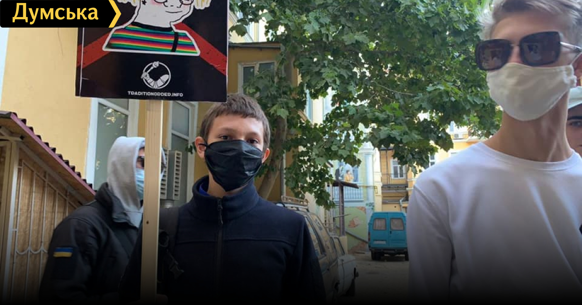 «Правые» заблокировали вход в офис. Леонова отмечает, что средний возраст участников акции протеста был 14-17 лет. Несовершеннолетних ребят с плакатами против равноправия людей привели координаторы постарше. После прибытия полиции они сказали, что проводят митинг и растянули баннер «Одесса против пропаганды ЛГБТ».