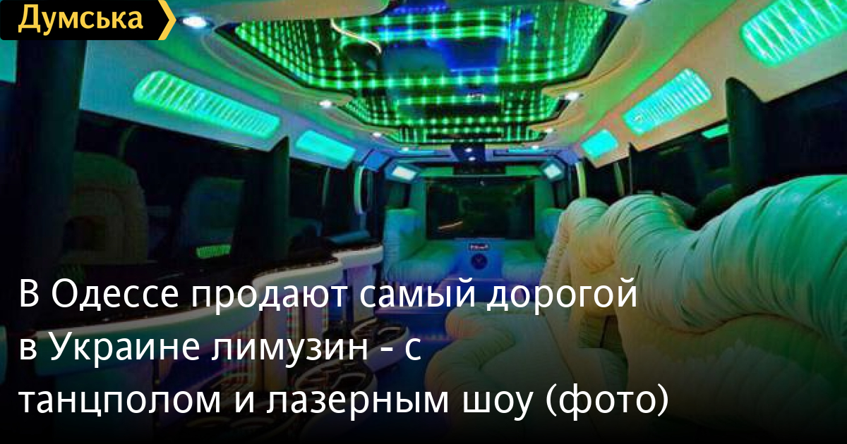В Одессе выставлен на продажу «лимузин шейха» — с танцполом, караоке, лазерным шоу, дымовой машиной. В 12-метровой машине могут комфортно разместиться до 22 человек.