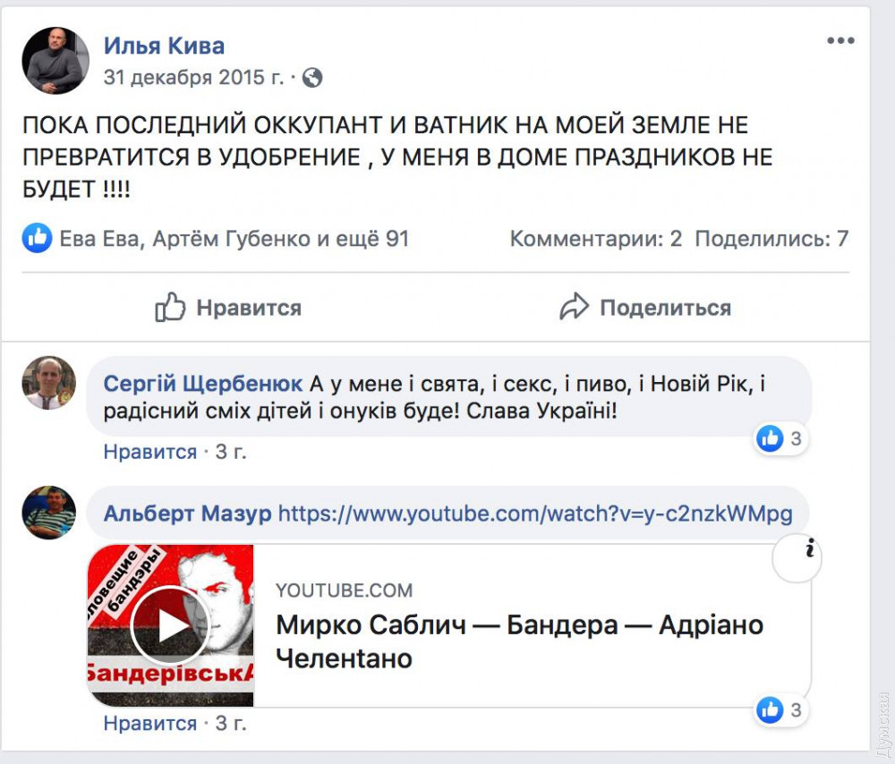 То же касается и одиозного «социалиста» Кивы — на бордах приведены его ранние высказывания. До дружбы с Медведчуком, Бойко и Рабиновичем он желал «превращения ватников и оккупантов в удобрения» и требовал изоляции оккупированных территорий.