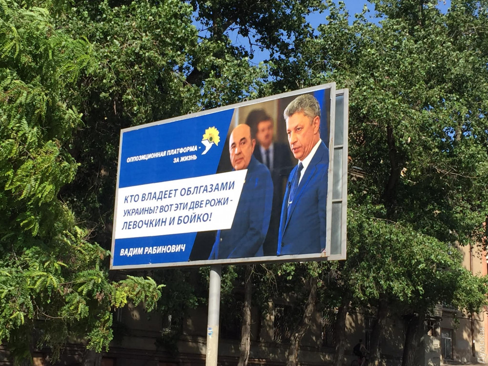 Впервые борды с изображением кандидатов в депутаты от «Оппозицонной платформы «За жизнь» Вадима Рабиновича и Ильи Кивы появились на улицах Одессы больше недели назад.