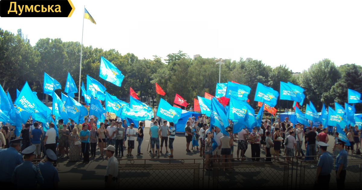 Как сообщает корреспондент «Думской», перед зданием облгосадминистрации на проспекте Шевченко собрались порядка полутора тысяч человек под флагами Партии регионов, Компартии и общественной организации «Дозор».