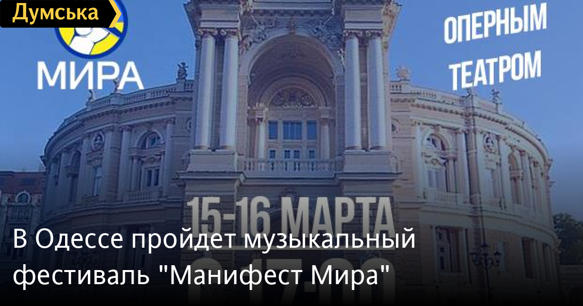 Музыкальный фестиваль под названием «Манифест Мира» пройдет в Одессе в эти выходные – 15 и 16 марта. Коллективы и исполнители из разных городов Украины выступят на Театральной площади возле одесской Оперы. «Мы, одесситы, хотим достучаться до каждого гражданина нашей страны – на Западе и на Востоке, в Киеве и в Крыму, и громко заявить: мы отбрасываем все, что нас разъединяет! Мы НЕ испытываем ненависти друг к другу, мы НЕ являемся «фашистами» или «сепаратистами», мы НЕ враги народа России, мы НЕ хотим войны! Мы покажем Украине, России и миру, что конфликт между разными регионами нашей страны – абсолютно надуманный и искусственный! Мы – не враги друг другу. Мы, граждане Украины, хотим вместе жить в единой, возрождённой, свободной и счастливой стране!», — заявляют организаторы фестиваля. Начало в 17:00. СМЕРТЬ РОССИЙСКИМ ОККУПАНТАМ! Заметили ошибку? Выделяйте слова с ошибкой и нажимайте control-enter |