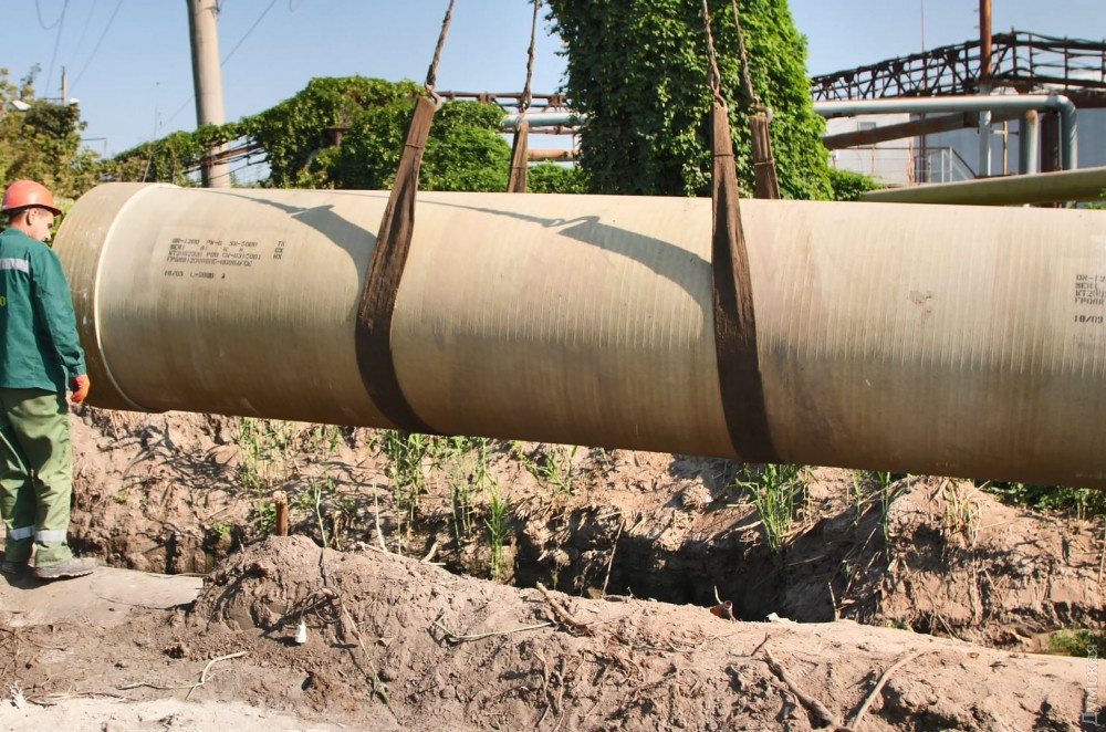 Всего здесь проходит три трубопровода. Один из них уже обновили в прошлом году. Сейчас меняют почти километр трубопровода диаметром 1400 мм. Вместо старой трубы, которая отработала свой эксплуатационный лимит, прокладывают почти километр новой стеклопластиковой трубы диаметром 1200 мм турецкого производства.