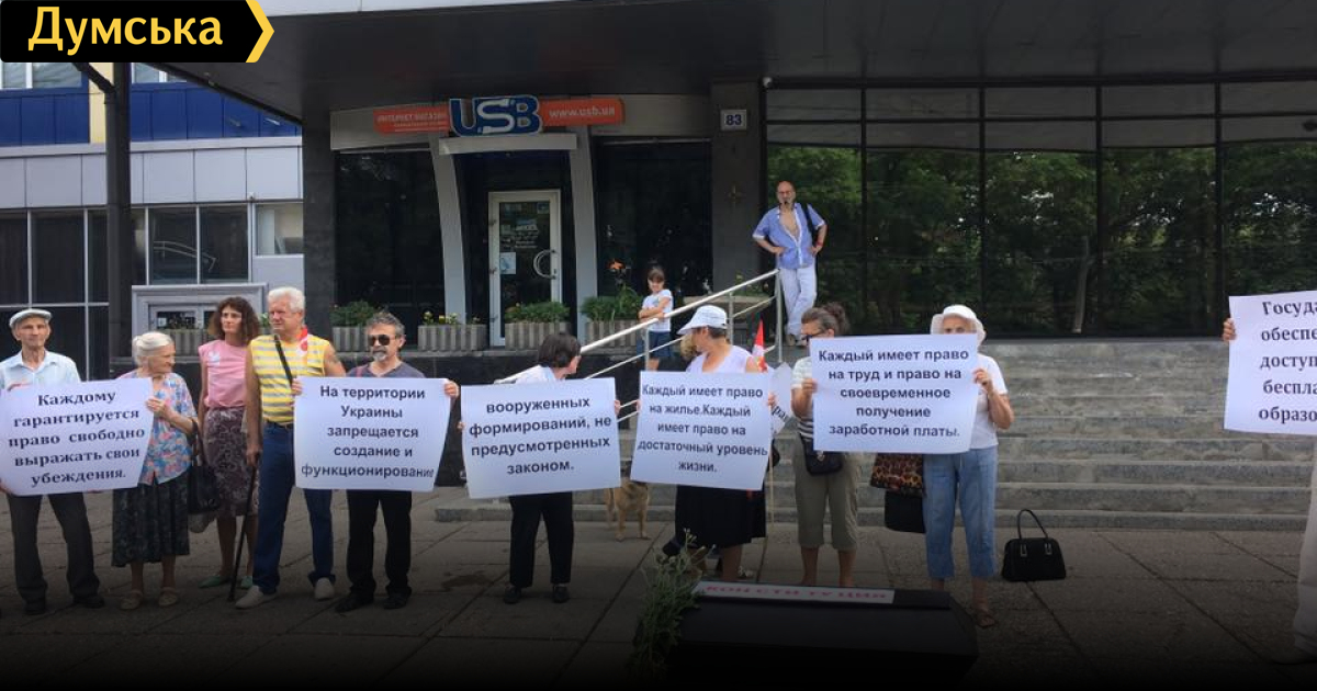 Сегодня, 28 июня, у админздания облсовета на Канатной, 83 пророссийские активисты провели акцию протеста.