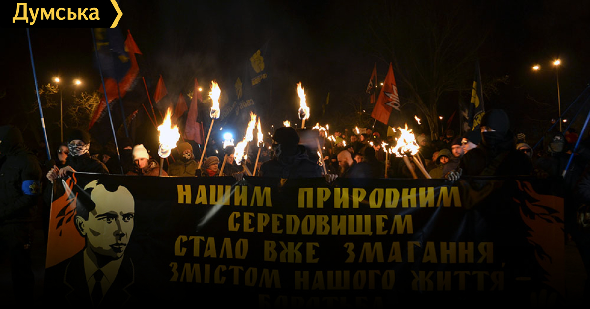 Почему первомайская демонстрация с красными флагами запрещена, а такое факельное шествие разрешено? Как же свобода слова и равенство граждан, гарантированные Конституцией Украины?
