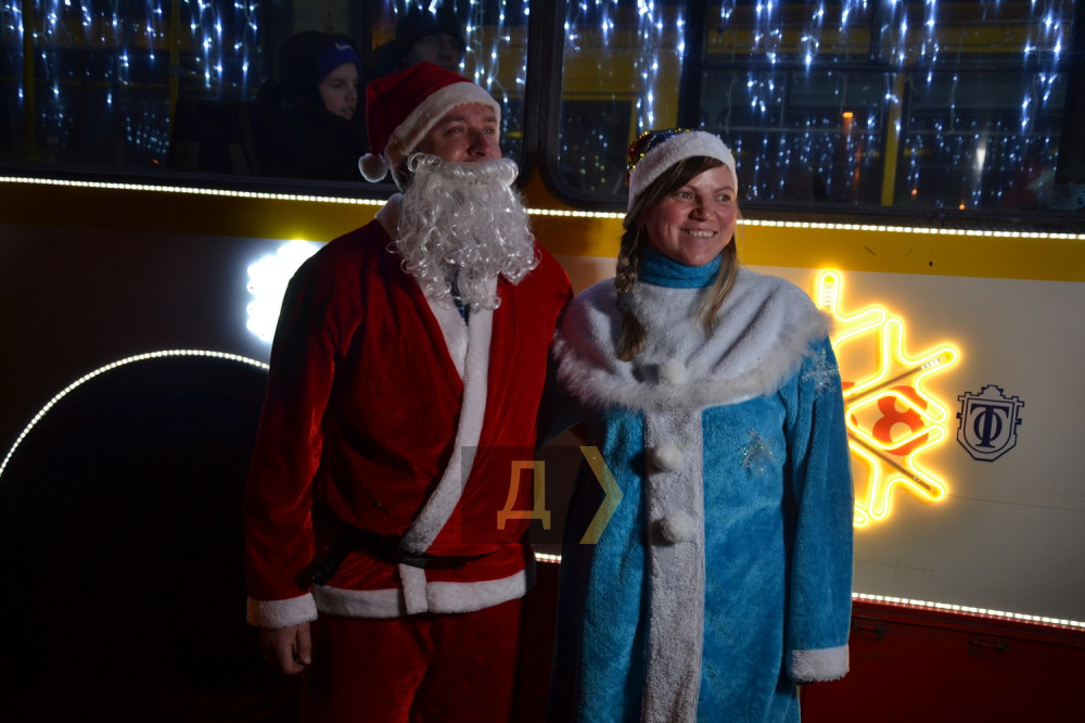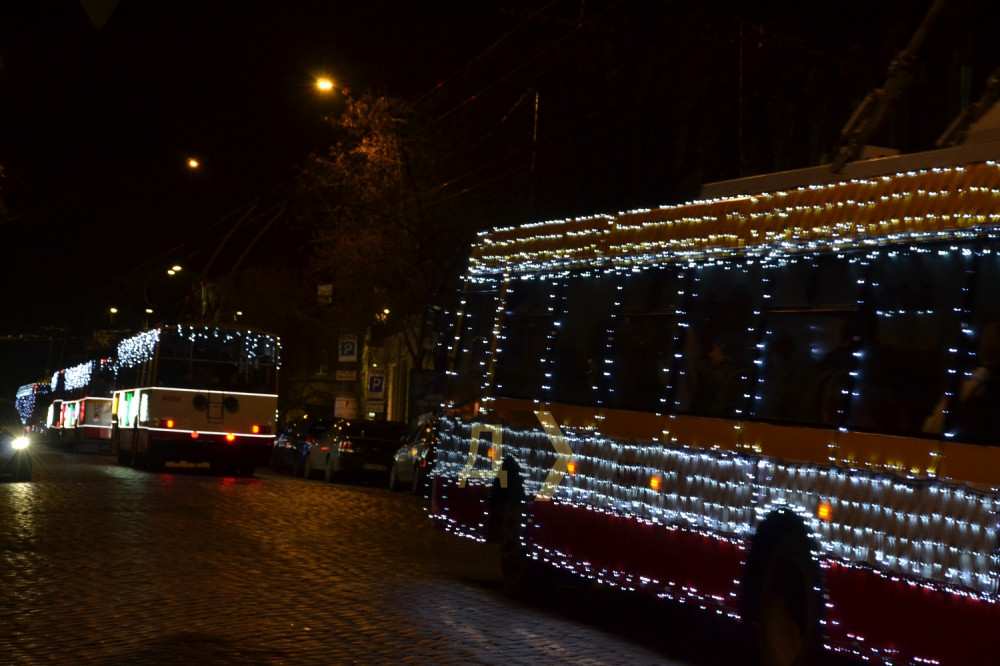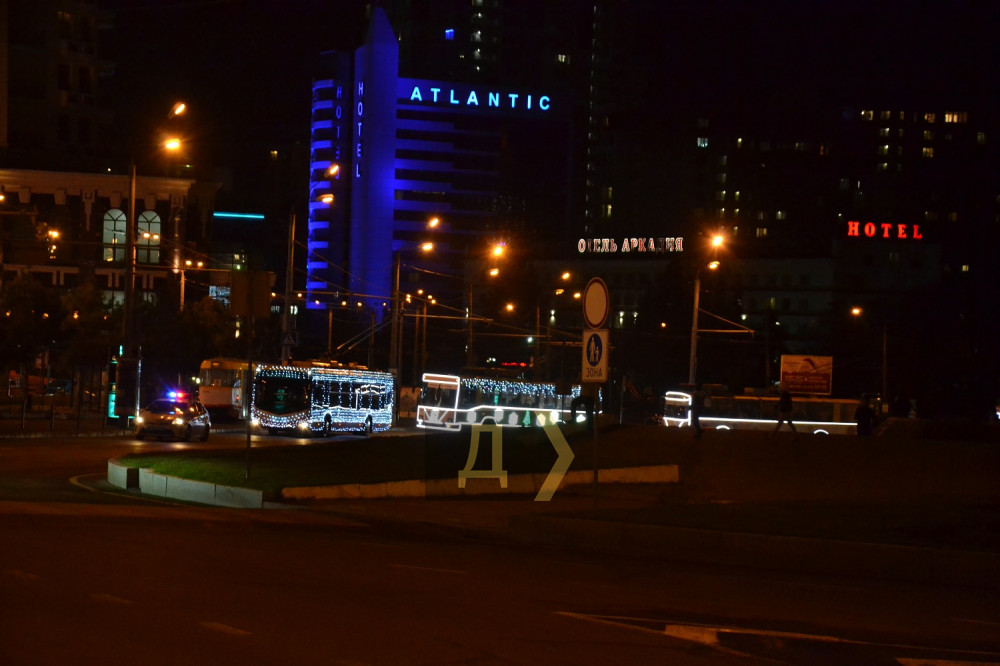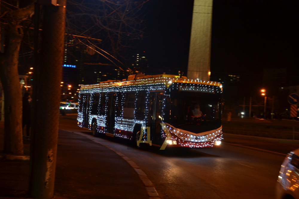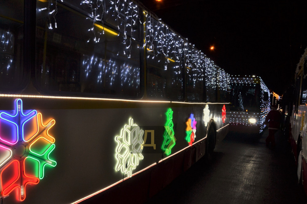 «Олень» на троллейбусе,(предпоследнее фото)- как напоминание пешеходам, что нужно смотреть по сторонам и не перебегать перед Едущем транспотром. Почему такие троллейбусы не могут ездить с пассажирами, в период с 19 декабря по 8 января? Очень красиво и привлекательно!