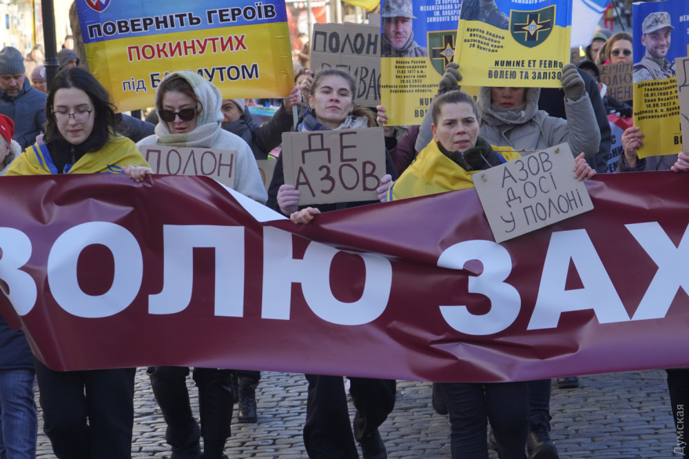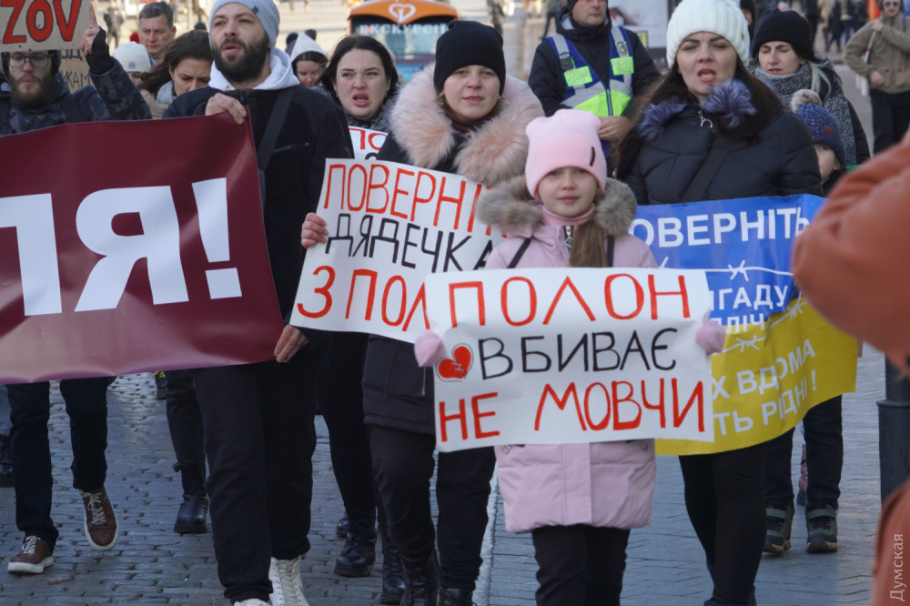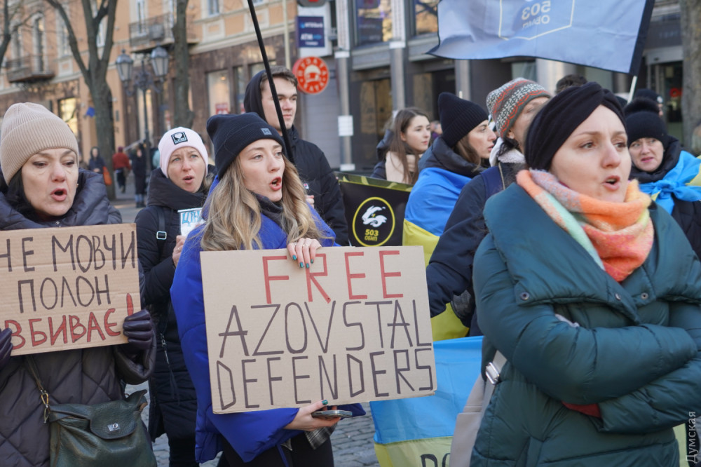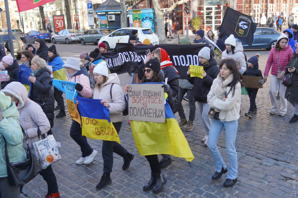 Близько 50 осіб із плакатами та портретами полонених захисників пройшли вулицею Дерибасівською, передає кореспондент «Думської».