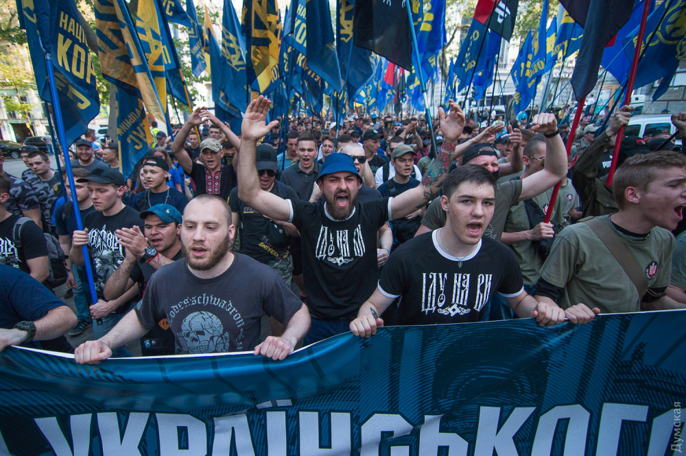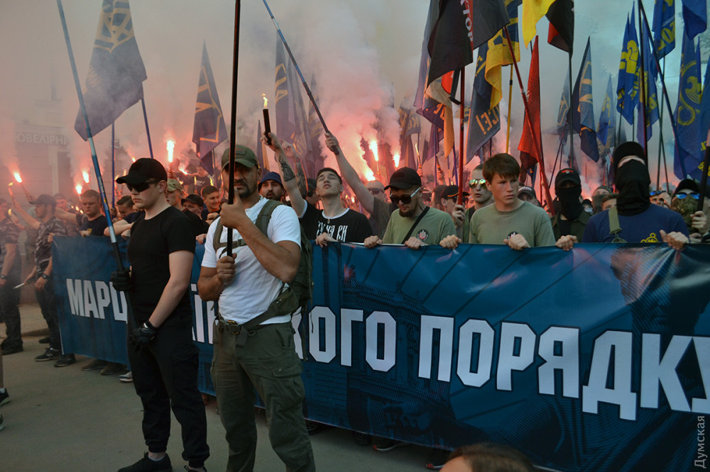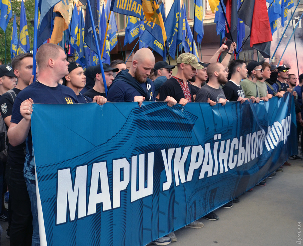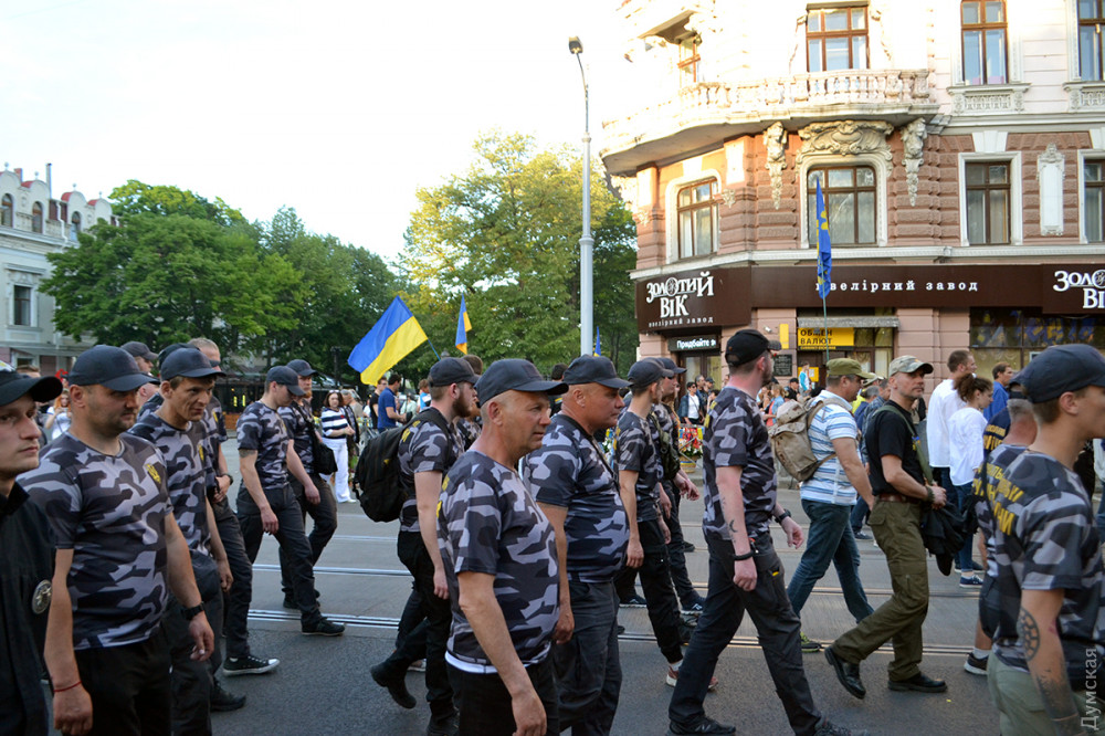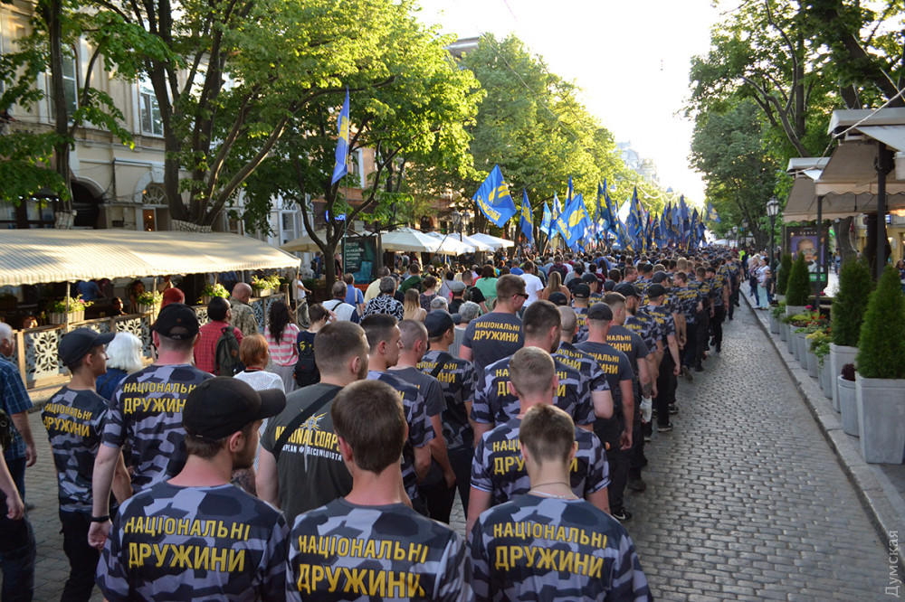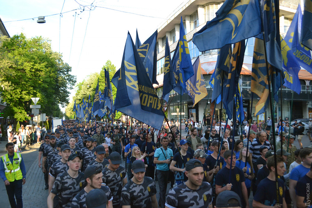 Несколько сотен активистов ВО «Свобода», организаций «Национальный корпус», «Национальные дружины», «Уличный фронт» и «Правый сектор» прошли сегодня по улицам Одессы.