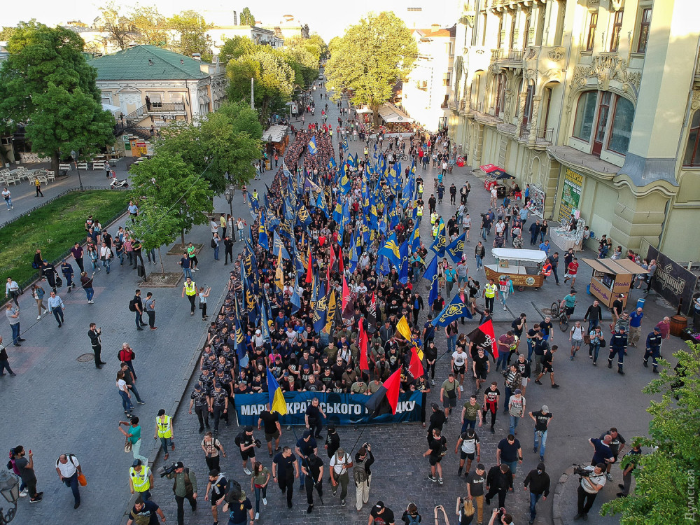 Они приурочили марш к четвертой годовщине событий 2 мая, которые рассматривают как «победу одесситов над «русским миром», передает корреспондент «Думской».