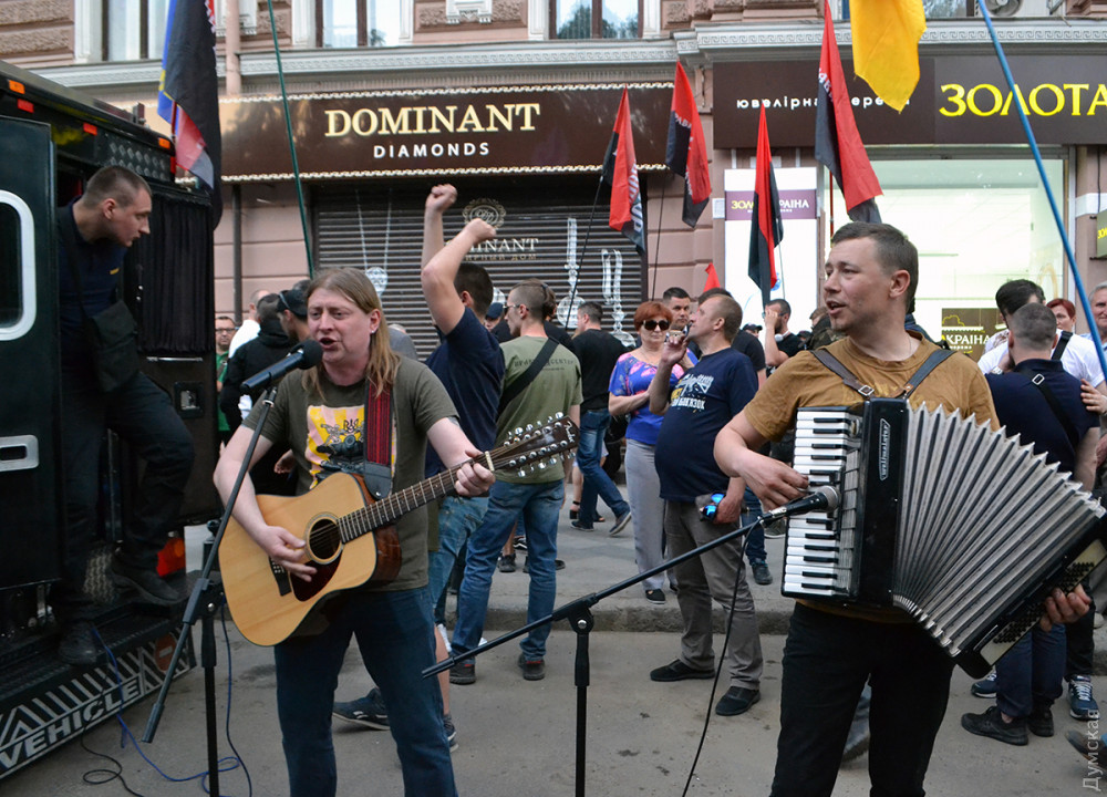 Заместитель Одесской областной партийной организации ВО «Свобода» Константин Василец зачитал «Молитву украинского националиста», а потом перед участниками марша выступила с патриотическими песнями одесская рок-группа «Друже Музико».