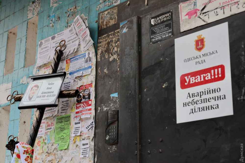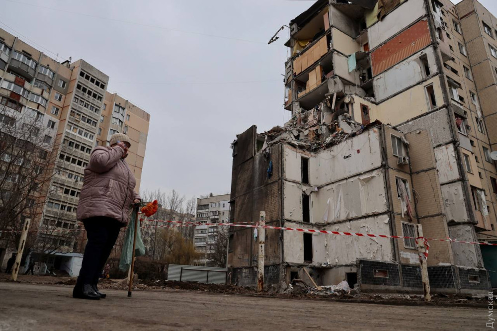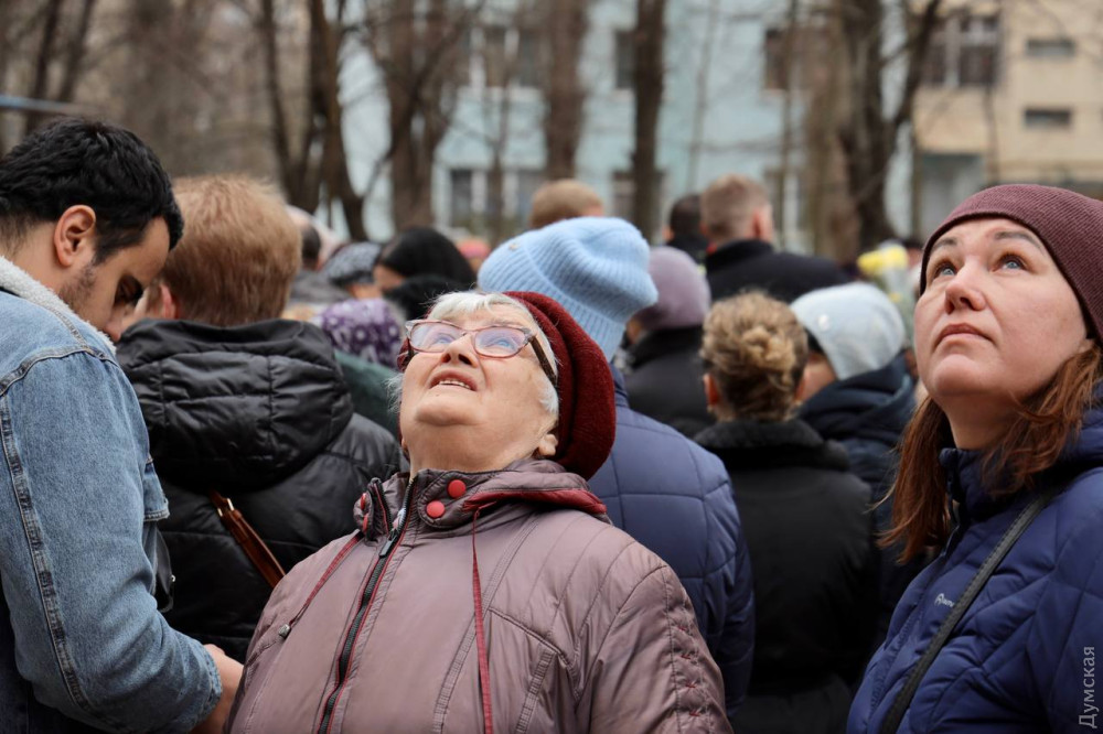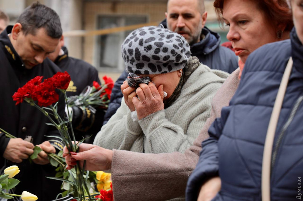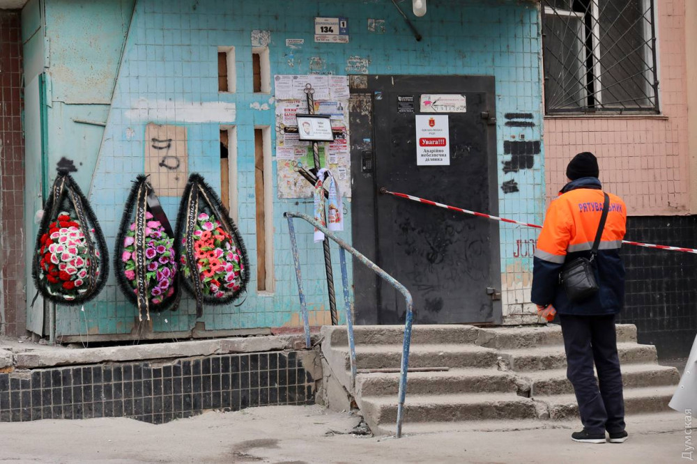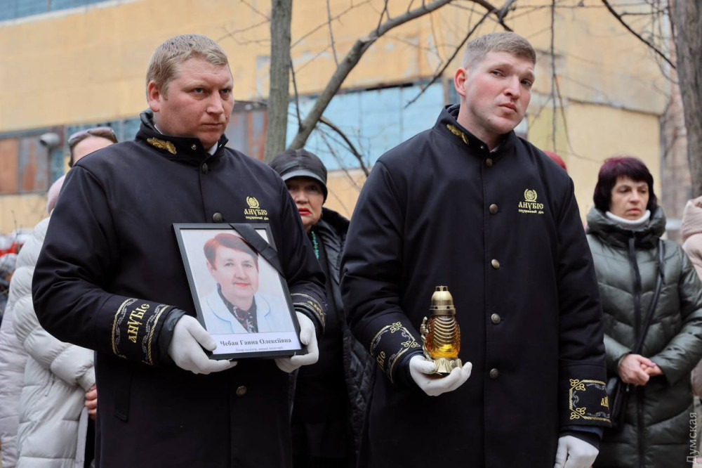 Біля будинку на проспекті Добровольського, 134, один із під'їздів якого 2 березня обрушив вибух ворожого дрона, вранці 6 березня відбулася церемонія прощання із загиблою під завалами педіатром Ганною Чебан.