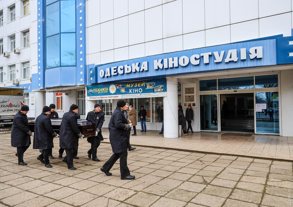 Жалобна церемонія відбулася у стінах Одеської кіностудії на Французькому бульварі. Провести в останню путь артиста прийшли десятки городян.