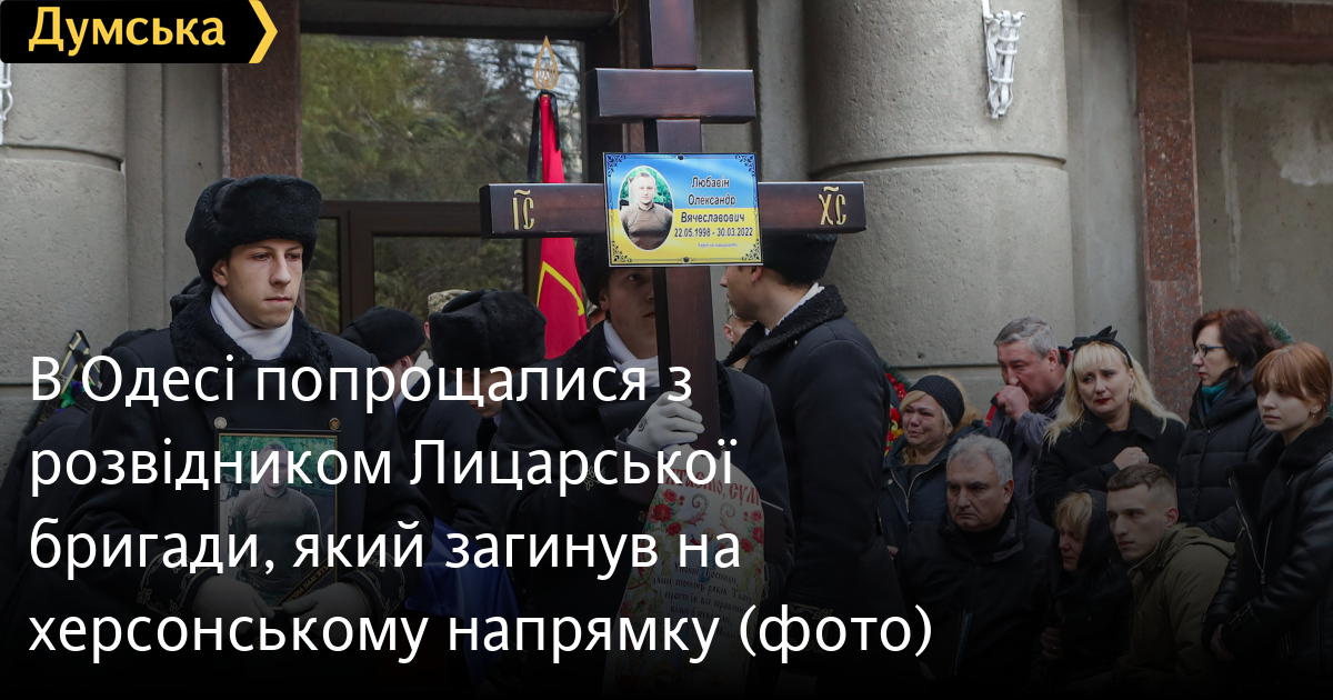 Прощання з розвідником 28-ї окремої механізованої бригади імені Лицарів Зимового походу капітаном Олександром Любавіним, який загинув за свободу і незалежність України, відбулося сьогодні в гарнізонному Будинку офіцерів Одеси. Загиблому було всього 24 роки, повідомляє кореспондент «Думської». Тіло героя, який отримав смертельне поранення під час виконання бойового завдання в районі села Олександрівка Херсонської області, вдалося евакуювати тільки в листопаді під час деокупації правого берега Дніпра. «Це була неймовірна людина, — зазначив у прощальному слові заступник командира 28-ї бригади Андрій Кравець. — Ще в зоні операції Об'єднаних сил, завдяки його наполегливості, його таланту було створено нову систему отримання розвідінформації, яку потім використовують інші підрозділи. Після початку повномасштабної війни він організував практично всю розвідувальну мережу півдня України, об'єднав усі розвідувальні органи, які тільки були, незважаючи на те, що вони належали до різних видів Збройних сил України. Ми помстимося і будемо мститися доти, доки всі загарбники не загинуть, а наша земля не буде звільнена». Героя поховали на Алеї слави героїв Західного кладовища. СМЕРТЬ РОСІЙСЬКИМ ОКУПАНТАМ! Помітили помилку? Виділяйте слова з помилкою та натискайте control-enter |