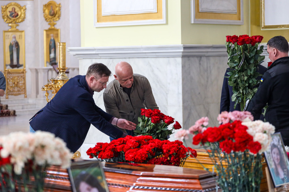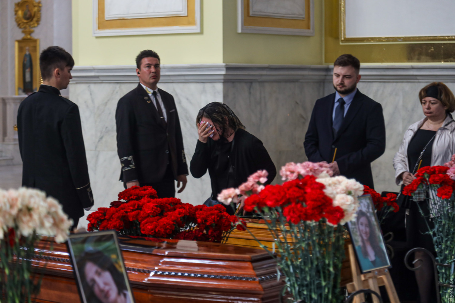 Проводить в последний путь трехмесячную малютку Киру, ее маму Валерию Глодан и бабушку Людмилу Явкину пришли не только родственники и близкие, но одесситы, которые лично не знали погибших.