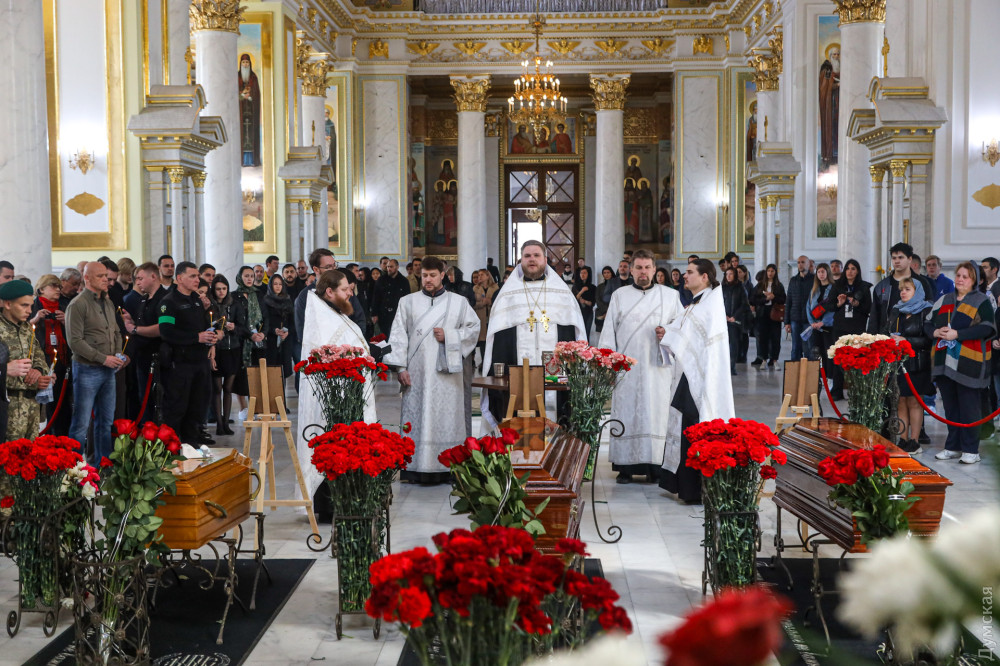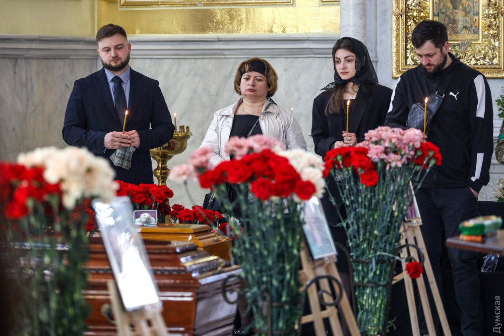 С семьей, погибшей в результате российского ракетного обстрела Одессы 23 апреля, простились сегодня в центре города.