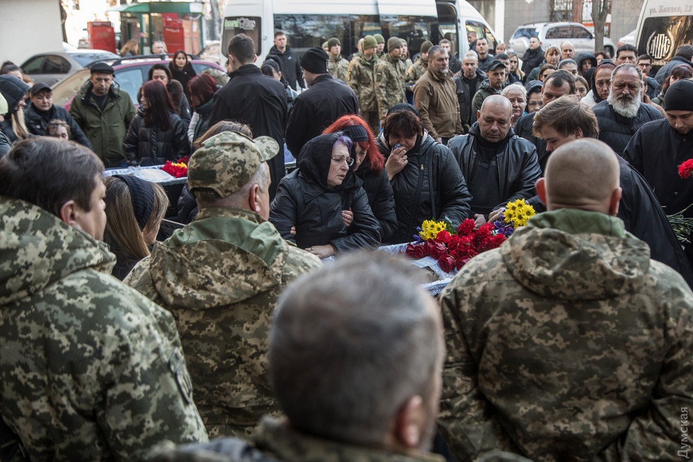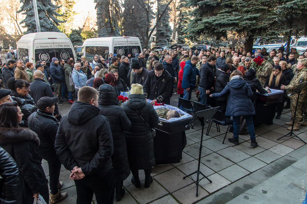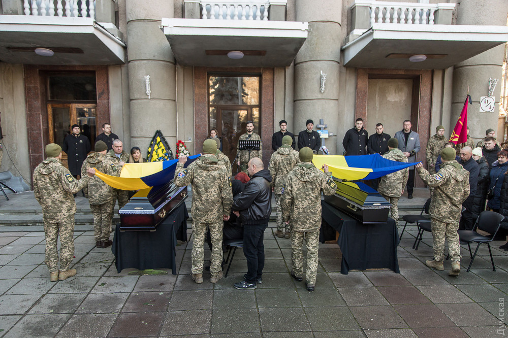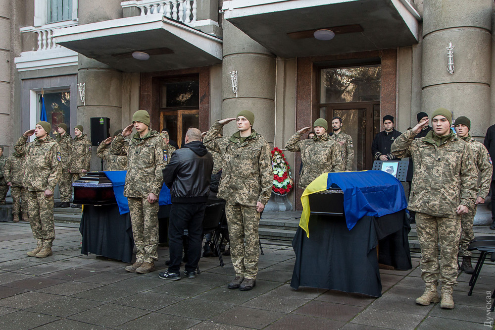 Прощання з двома українськими воїнами, які загинули напередодні Нового року, відбулося сьогодні біля одеського Будинку офіцерів.