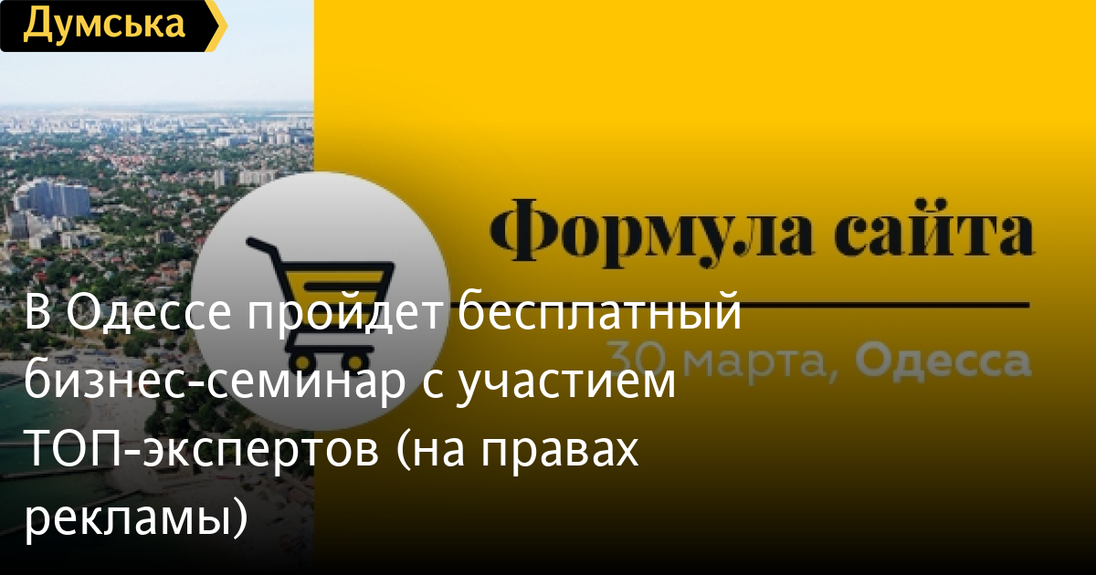 30 марта в Одессе пройдет семинар по созданию и продвижению бизнеса в интернете. «Формула сайта: интернет-магазин от создания до прибыли» — это бесплатное мероприятие, где расскажут все о продажах в интернете ТОП-эксперты украинского рынка: Яндекс.Украина, eSputnik, «Ольшанський и партнеры», AWG, «1С-Битрикс», АМР, Netpeak, Netocrat Communications и другие.