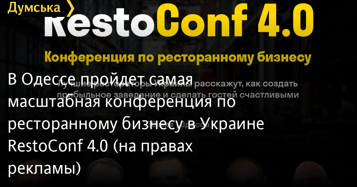 В Одессе пройдет самая масштабная конференция по ресторанному бизнесу в Украине RestoConf 4.0 (на правах рекламы)Самая масштабная конференция по ресторанному бизнесу в Украине RestoConf 4.0 состоится в Одессе 30 мая. В ходе мероприятия лучшие рестораторы Украины расскажут, как создать прибыльное заведение и сделать гостей счастливыми. В числе спикеров: - Александр Орлов (BULLDOZER GROUP) - Андрей Худо (FEST, Львов) - Арам Мнацаканов - Евгений Клопотенко (Киев) - Максим Храмов (Киев) - Алексей Костылев (Ninja Sushi) - Александр Али (G-Group) - Дмитрий Запорожец (First Line Group) - Михаил Серебрин (Take Five Hospitality Group) - Марьяна Жосан (Synergy Group) - Олег Куприков (Synergy Group) и др. В конференции примут участие более тысячи человек: нетворкинг и бизнес-знакомства, подарки каждому участнику от 500 грн и выше, кофе-брейк с десертами и напитками, вкусные дегустации от партнеров, ланч и ужин со спикерами. Также гостей ждет профессиональный ведущий, фото/видеосъемка, шоу-программа, экспо-зона и полноценная ресторанная выставка. Еще одним приятным сюрпризом станут подарки от спонсоров и партнеров на более чем 300 тысяч гривен. RestoConf 4.0 пройдет 30 мая в концерт-холле «Одесса», с 10:00 до 19:00. Больше подробностей тут. СМЕРТЬ РОССИЙСКИМ ОККУПАНТАМ! Заметили ошибку? Выделяйте слова с ошибкой и нажимайте control-enter |