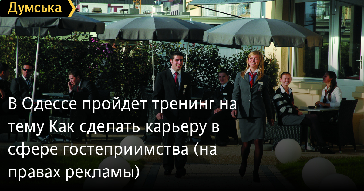 В Одессе пройдет тренинг на тему «Как сделать карьеру в сфере гостеприимства» (на правах рекламы)22 октября швейцарский образовательный концерн Swiss Education Group (SEG) и компания DEC education проведут в Одессе тренинг, посвященный карьерным возможностям в сфере гостеприимства. Тренинг пройдет в отеле «Бристоль» (ул. Пушкинская, 15, Одесса) и будет включать практическую информацию о преимуществах, нюансах и особенностях обучения, а также построении успешной карьеры в сфере международного гостеприимства в одной из самых инновационных и развитых стран Европы — Швейцарии. Участники события смогут узнать, какие карьерные перспективы открываются перед выпускниками после получения престижного западного диплома. Спикером тренинга выступит Горан Йорданов — региональный менеджер в странах Восточной Европы Swiss Education Group (SEG). Учебные заведения, входящие в SEG, готовят специалистов для отельно-ресторанной, туристической сфер, управленцев спа-курортами, ивент-агентствами и т.д. Мероприятие будет интересным старшеклассникам и студентам, которые хотят получить диплом магистра за границей, а также родителям, рассматривающих для своего ребенка обучение в престижном вузе Швейцарии. Тренинг будет проходить в рамках проекта CREATE THE FUTURE — GO TO STUDY ABROAD. Swiss Education Group — ведущий образовательный концерн Швейцарии, предлагающих своим студентам престижное образование в области туризма, гостиничного бизнеса, кулинарии, ивент-менеджмента. Отличительной особенностью обучения является возможность проходить оплачиваемую практику в лучших компаниях выбранной области. Сегодня в составе SEG - пять школ отельного менеджмента, которые имеют 7 кампусов в разных городах Швейцарии. Компания DEC education является официальным представителем Swiss Education Group в Украине, предлагает консультационные услуги по организации образования за рубежом: от анализа целей клиента до информационного сопровождения в период учебы. Работает на рынке Украины 17 лет. СМЕРТЬ РОССИЙСКИМ ОККУПАНТАМ! Заметили ошибку? Выделяйте слова с ошибкой и нажимайте control-enter |