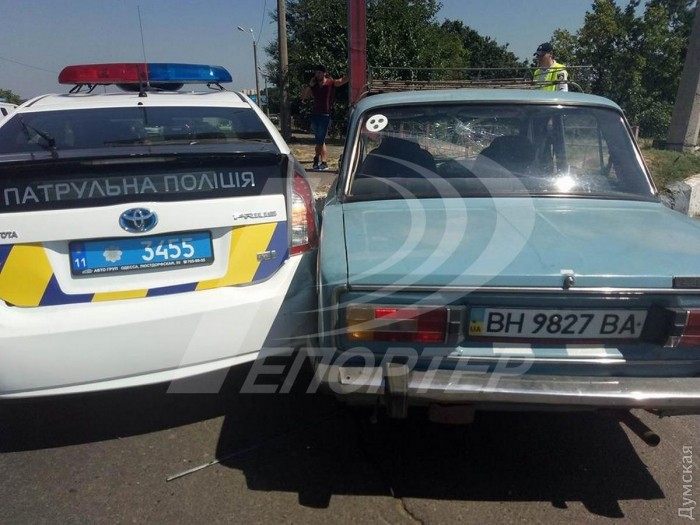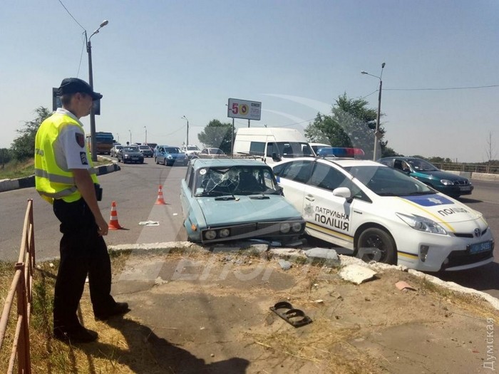 «Сегодня около 13-часов водитель автомобиля ВАЗ-2106, двигаясь по Овидиопольской дороге со стороны промрынка «7-й километр» в сторону улицы Центральный Аэропорт, не выдержал безопасную дистанцию и совершил столкновение со служебным автомобилем Toyota, после чего допустил наезд на препятствие – бордюрный камень», — отметили в полиции.