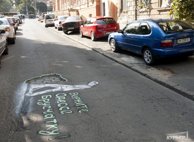 Авторы граффити – это художник Святослав Лаврусенко и общественник Ярослав Берендаков. Таким образом они хотят привлечь внимание общественности к проблеме исчезновения уникальной брусчатки с одесских улиц, пишет «Южный курьер».