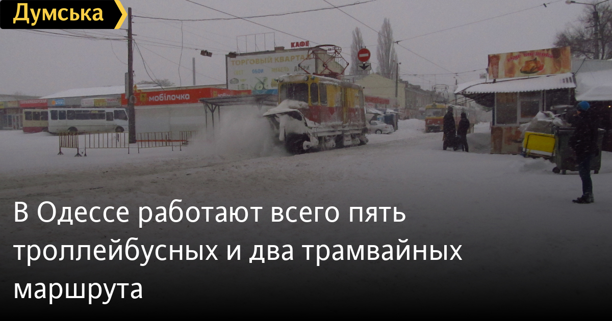 В Одессе работают всего пять троллейбусных и два трамвайных маршрута. Движение по остальным приостановлено из-за непогоды, сообщают в КП «Одесгорэлектротранс».