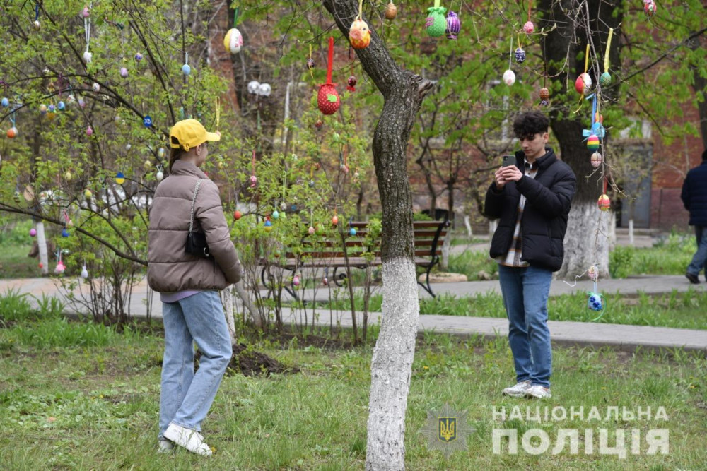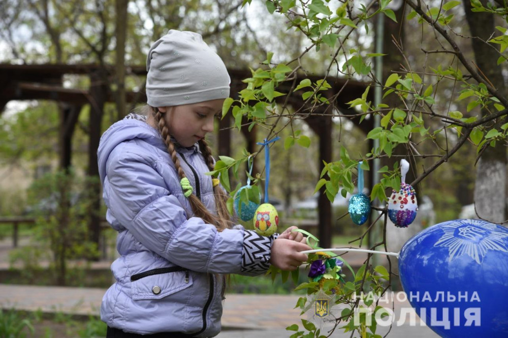 В Одессе к Пасхе ювенальные полицейские вместе с детьми украшали деревья в больнице на Воробьева.
