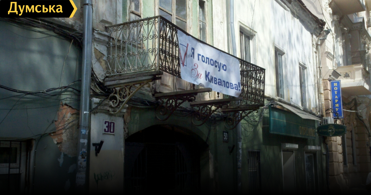 В Одессе руины украсили ворованной агитацией Партии регионов и нардепа Кивалова