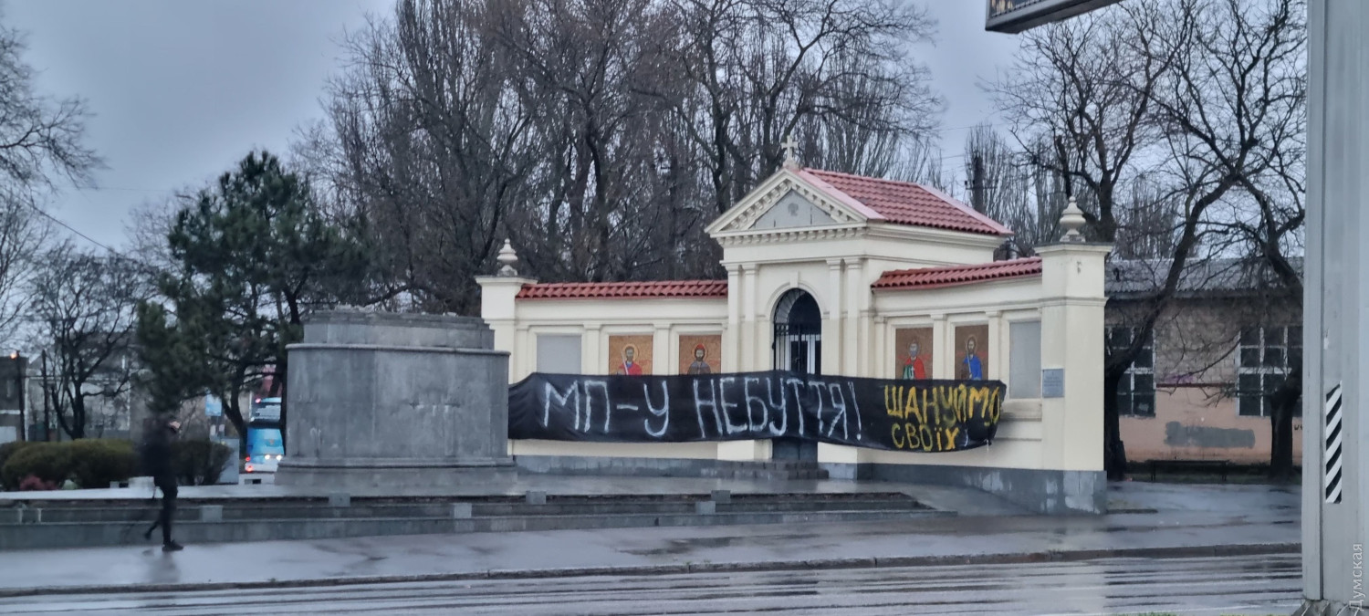 В Одесі поруч із постаментом пам`ятника Суворову демонтували ікони Миколи II і Ушакова та вивісили банер проти московського патріархату