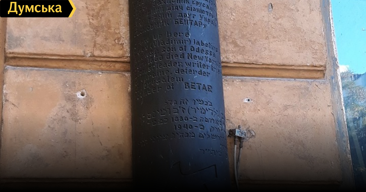 В Одессе с памятника идеологу сионизма похитили фигурку человека, усмиряющего льваОдесский памятник идеологу сионизма-ревизионизма, создателю Еврейского легиона, писателю и журналисту Владимиру (Зееву) Жаботинскому повредили неизвестные. Об этом сообщил местный житель Семен Абрамович. С горельефа, установленного на фасаде дома №1 по Еврейской улице, где жил сионистский деятель, сняли символическую фигуру человека, усмиряющего льва. Фото Семена Абрамовича СМЕРТЬ РОСІЙСЬКИМ ОКУПАНТАМ! Помітили помилку? Виділяйте слова з помилкою та натискайте control-enter Новини по цій темі: 26 червня 2025: Сумнівний подарунок: пам'ятку архітектури на Приморському бульварі намагаються повернути одеській громаді 17 серпня 2025: Продають мерч у залі Костанді, ховають Стародавній Єгипет у підвалах і виставляються в Німеччині: як виживають одеські музеї (частина перша) 27 лютого 2025: Компанія з групи Коломойського готується до будівництва торгового центру біля Дерибасівської 28 листопада 2024: Будинок із «милицями»: на пам`ятку архітектури в одеському провулку Ройтбурда чекають протиаварійні роботи за 20 млн грн (фото) |
