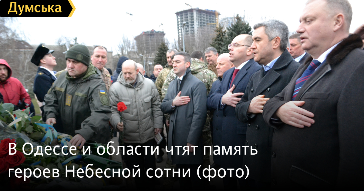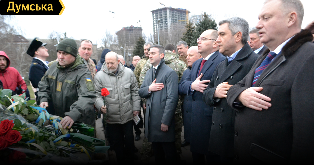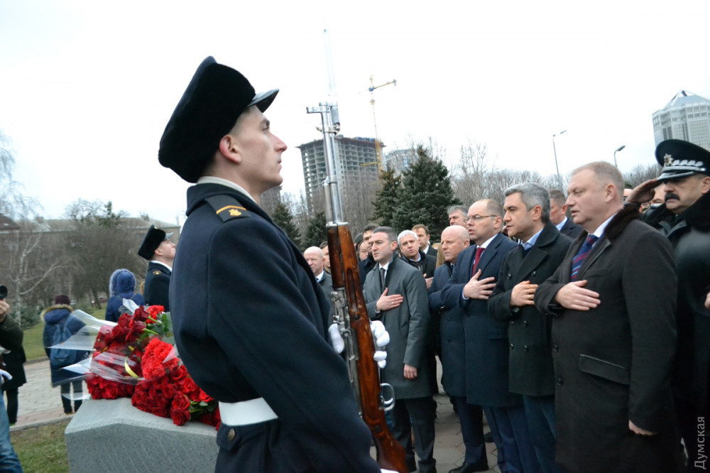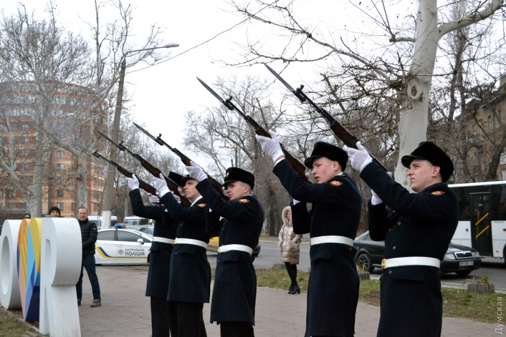 Минутой молчания, залпами почетного караула и возложением цветов к памятному знаку Героям Небесной сотни отметили в Одессе пятую годовщину трагических событий Революции достоинства.