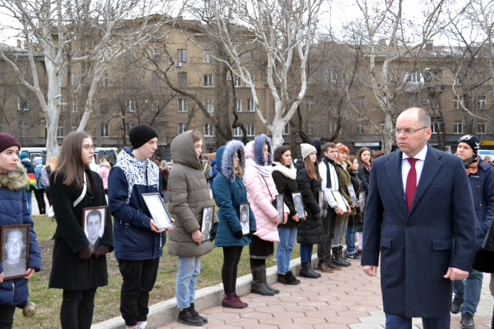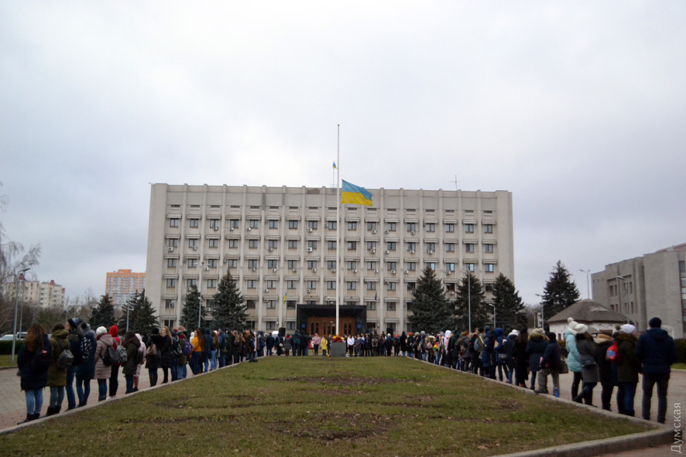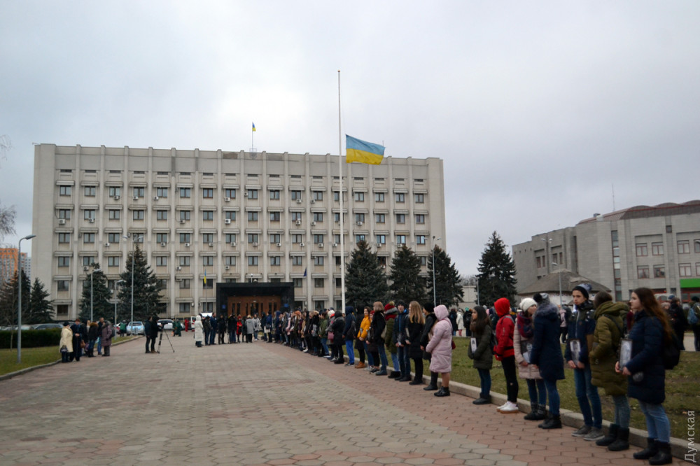 По случаю памятной даты сегодня на улицах Одессы вывесили приспущенные государственные флаги. Кроме того, по данным ОГА, в районах области проходят встречи участников Революции достоинства с учащимися школ, тематические занятия и литературные выставки.