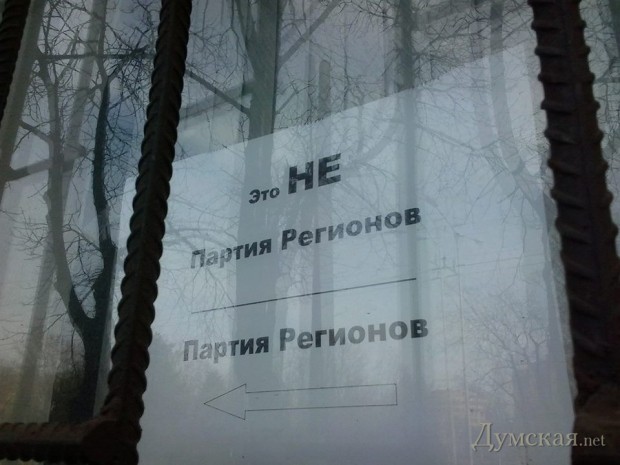 В Одессе жители домов, где находятся офисы Партии регионов, опасаются, чтобы их квартиры не перепутали с самим, собственно, офисом.
