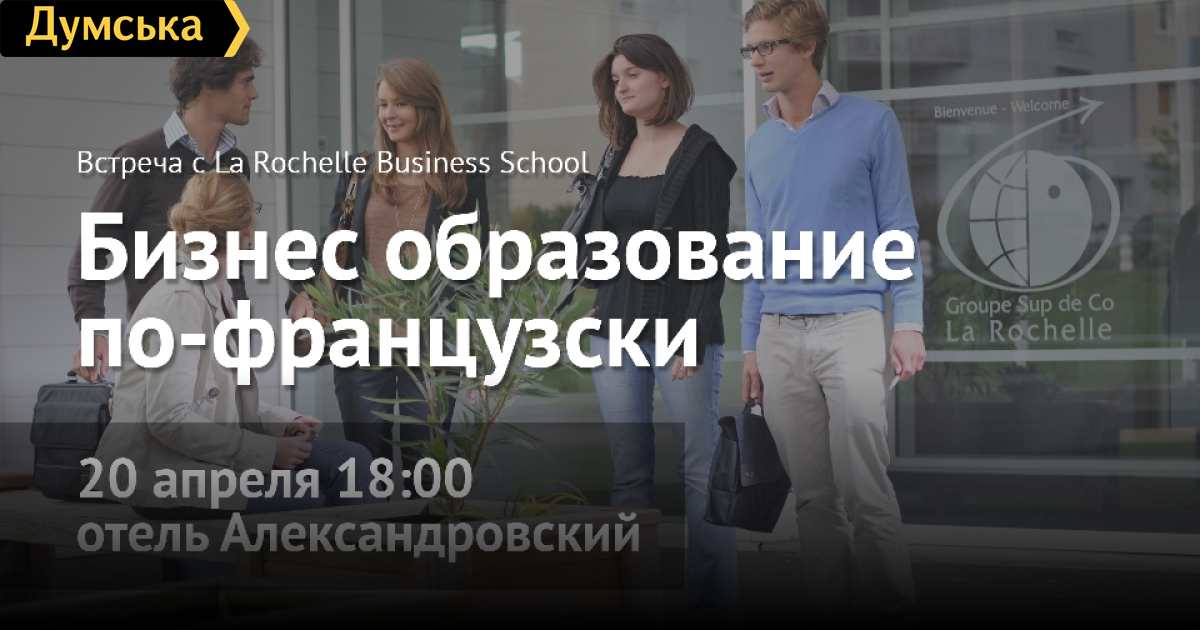 В Одессе состоится бесплатный семинар о бизнес-образовании во Франции (на правах рекламы)20 апреля в Одессе состоится бесплатный семинар о бизнес-образовании во Франции. Семинар пройдет в отеле «Александровский» и станет полезным для тех, кто планирует получить МВА или степень магистра в Европе, а также для тех, кто подбирает для своего ребенка качественное образование в сфере менеджмента и бизнеса за рубежом. Спикерами мероприятия станут представители французской бизнес-школы La Rochelle, которая входит в 5% лучших бизнес заведений в мире. Для участия в семинаре нужно пройти короткую регистрацию. Семинар и консультация после него поможет вам: - выбрать специальность, востребованную для европейского рынка - ознакомиться с программой Master in Management, на которую можно поступить с любым дипломом бакалавра - узнать о программах 2-го диплома для бакалавра школы La Rochelle - понять французскую систему образования и условия поступления. La Rochelle – рейтинговая бизнес-школа Франции, 90% выпускников которой получают предложение о работе сразу после выпуска. Программа образования построена таким образом, чтобы студент каждый год проходил стажировку в ведущих компаниях Франции или других стран Европы, получая рекомендательные письма и опыт работы в европейской компании. Бизнес-школа La Rochelle состоит в французской ассоциации элитных вузов Conférence des Grandes Ecoles. Семинар состоится 20 апреля в 18:00 в отеле «Александровский» по адресу пр-т Александровский, 12. Для участия в семинаре нужно пройти короткую регистрацию. Контактная информация: +38 (048) 789-09-35, +38 (067) 957-49-22 СМЕРТЬ РОСІЙСЬКИМ ОКУПАНТАМ! Помітили помилку? Виділяйте слова з помилкою та натискайте control-enter |