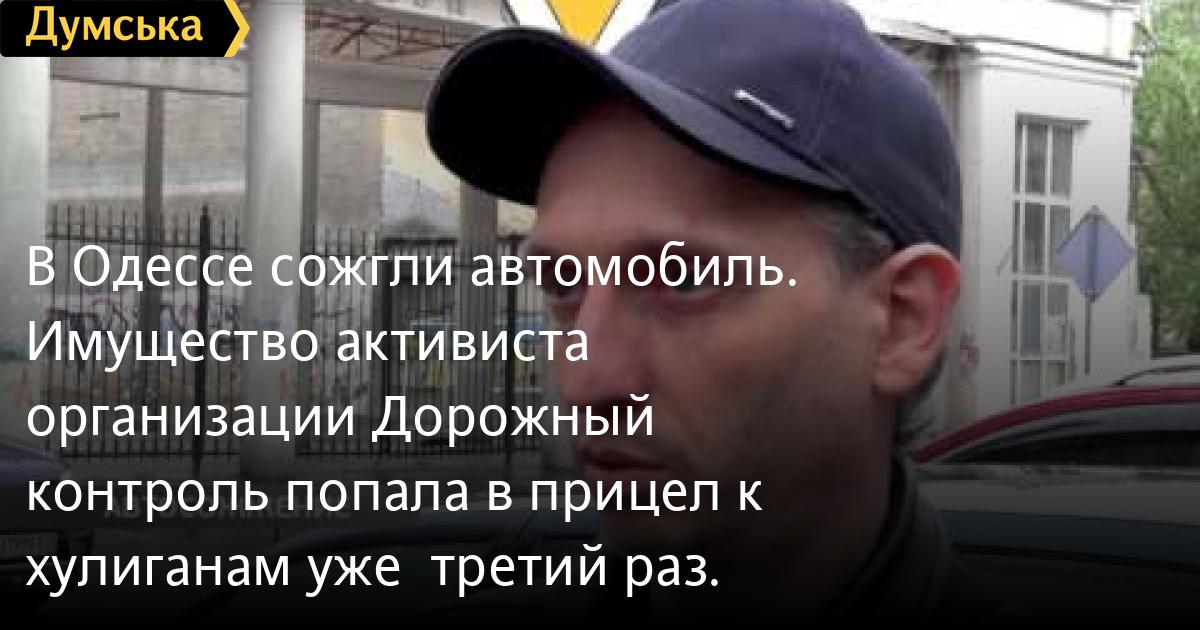 В Одессе сожгли автомобиль. Имущество активиста организации «Дорожный контроль» попала в прицел к хулиганам уже третий раз.В Одессе сожгли автомобиль. Имущество активиста организации «Дорожный контроль» попало в прицел к хулиганам уже третий раз. СМЕРТЬ РОССИЙСКИМ ОККУПАНТАМ! Заметили ошибку? Выделяйте слова с ошибкой и нажимайте control-enter Думская ТВ. Сюжеты: