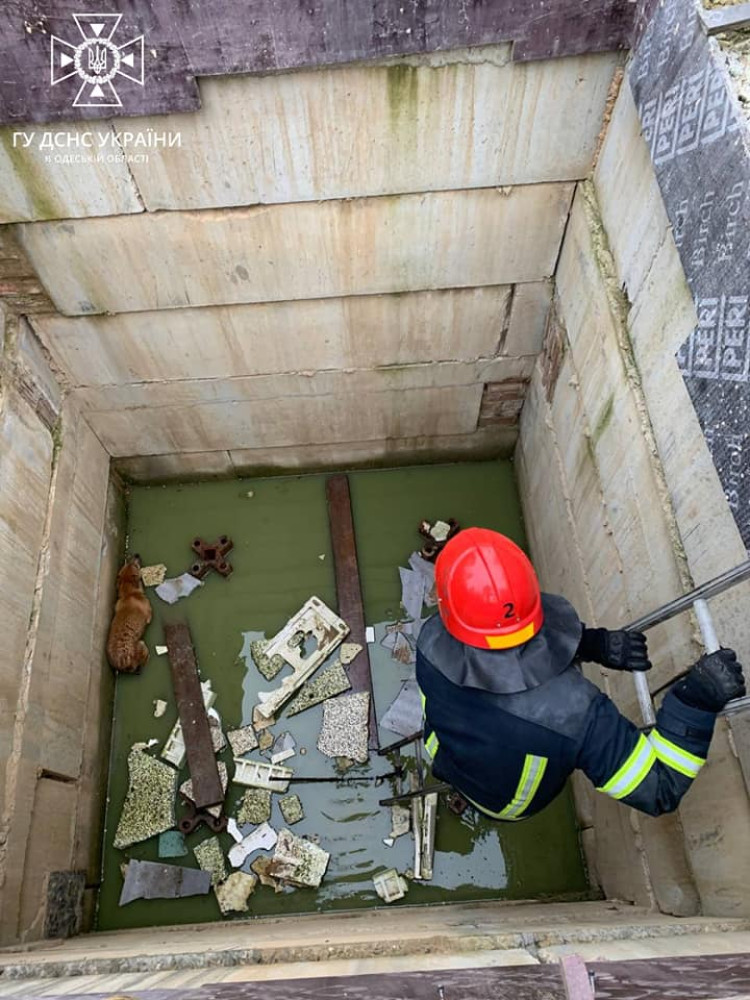 Як повідомили в пресслужбі ДСНС Одеської області, до Служби порятунку надійшло повідомлення, що собака впав в котлован.