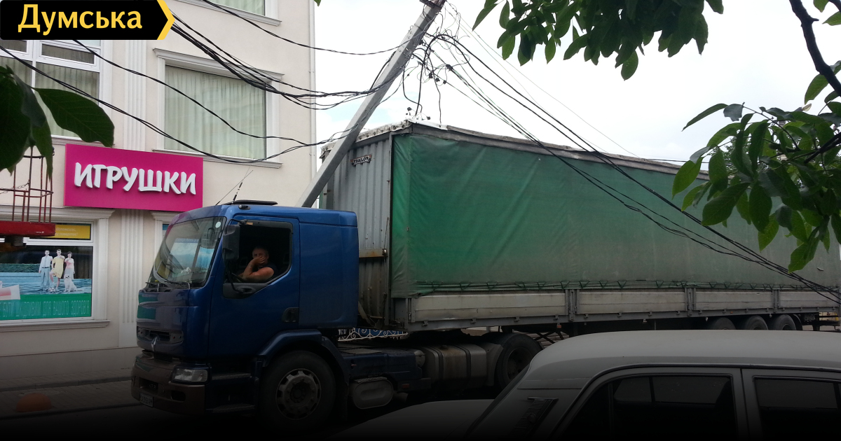 Александра Невского/Люстдорфская дорога - место просто «шикарное»! Машинам разъехаться негде, про пешеходов вообще никто не подумал - тротуаров просто нет. Толпа МАФов, «Антошка», какие-то кондоминимумы, избирательный штаб Тимошенко, новое здание, рядом с которым этот столб упал - всё это находится очень близко друг к другу. Как туда пролезла фура - вообще загадка! Там и без упавших столбов почти всегда пробки!