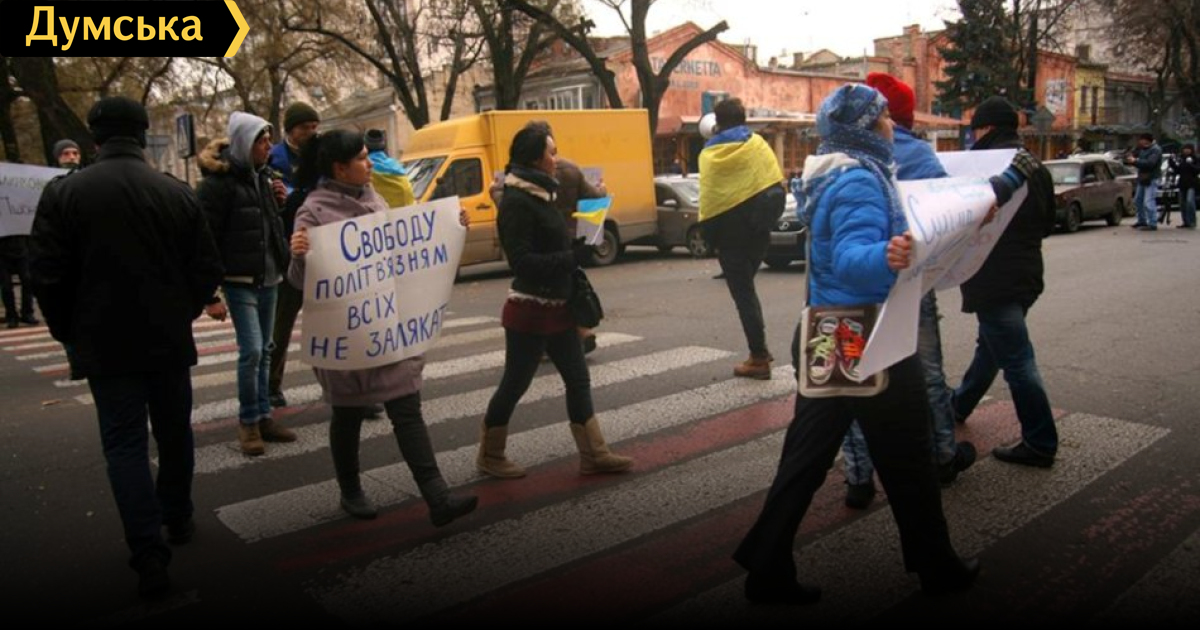 Студенты несколько минут ходили по пешеходному переходу в районе улицы Еврейской, тем самым мешая проезду машин. В руках они держали плакаты с антиправительственными лозунгами: «Перезавантаження влади. Час настав», «Свободу політв’язням» и другие.