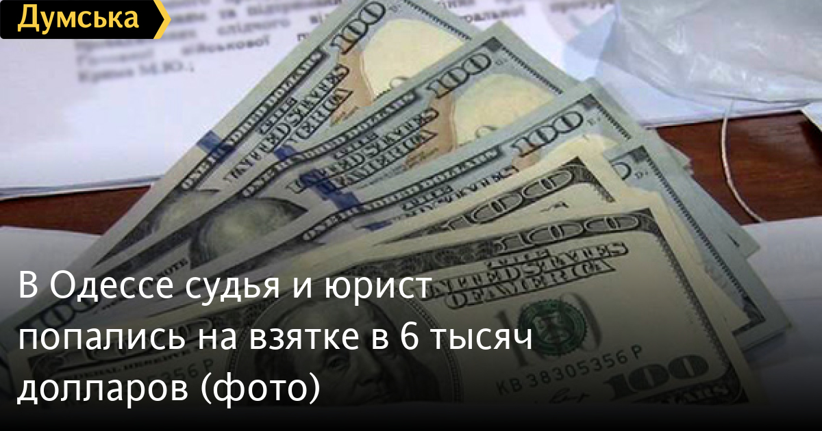 Правоохранители задержали судью и работника одного из районных судов Одессы за получение взятки в размере 6 тысяч долларов США.
