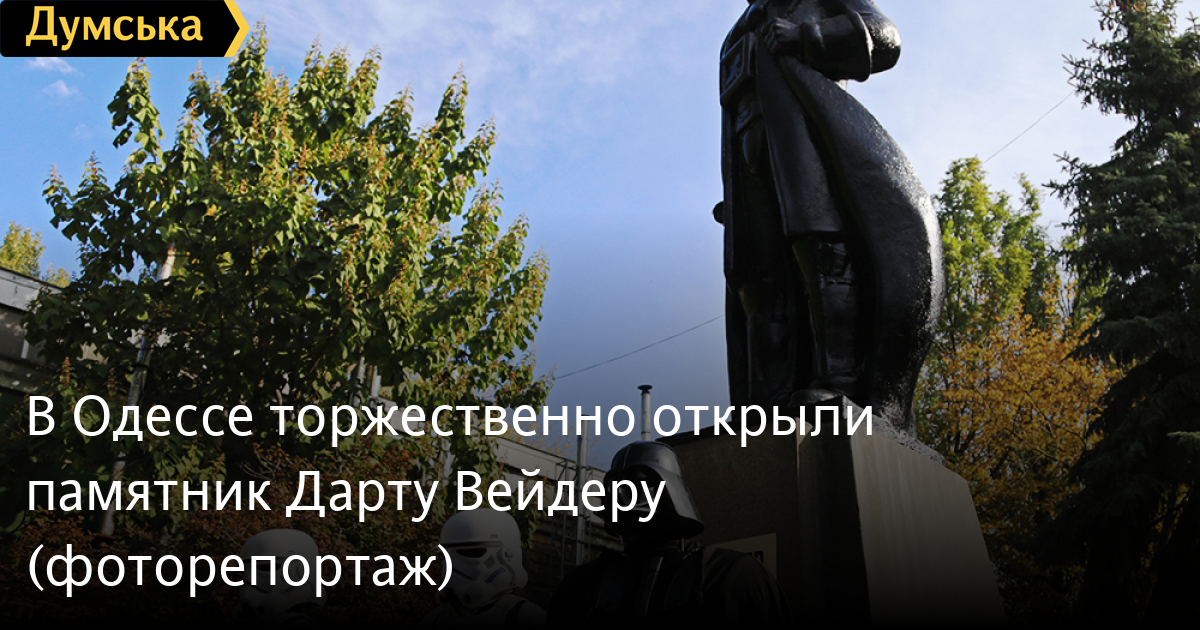 Памятник Темному лорду Дарту Вейдеру, созданный скульптором Александром Миловым, торжественно открыли на территории завода «Прессмаш» в Одессе.