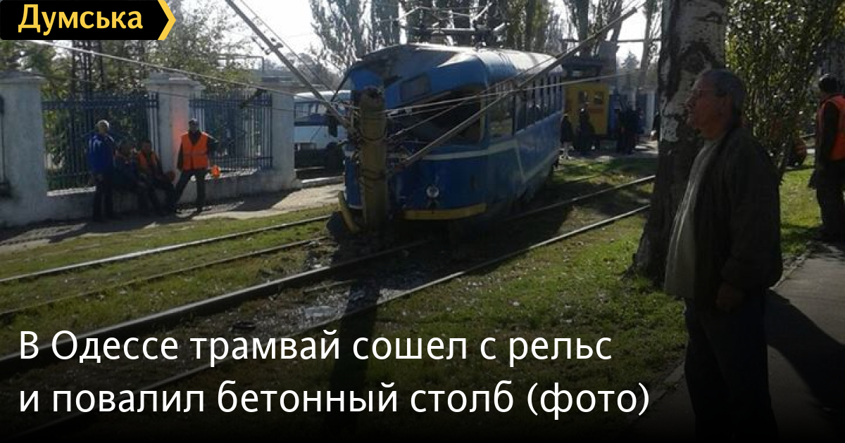 В районе «Продмаша» сошел с рельс и повалил бетонную опору контактной сети вагон, следовавший по маршруту №7.