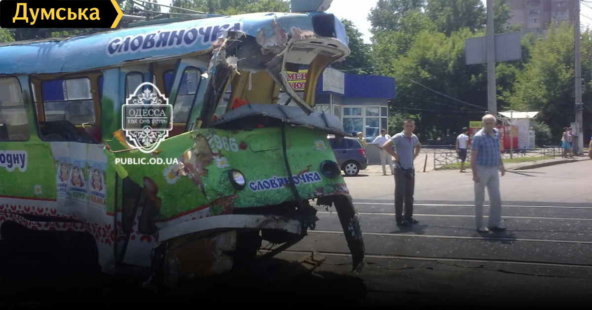 По словам очевидцев, трамвай №13 по неизвестным причинам не смог затормозить и врезался в самосвал. «Прямо в бензобак. Есть пожарные, трупов нет», — пишут свидетели в «Одесском форуме».
