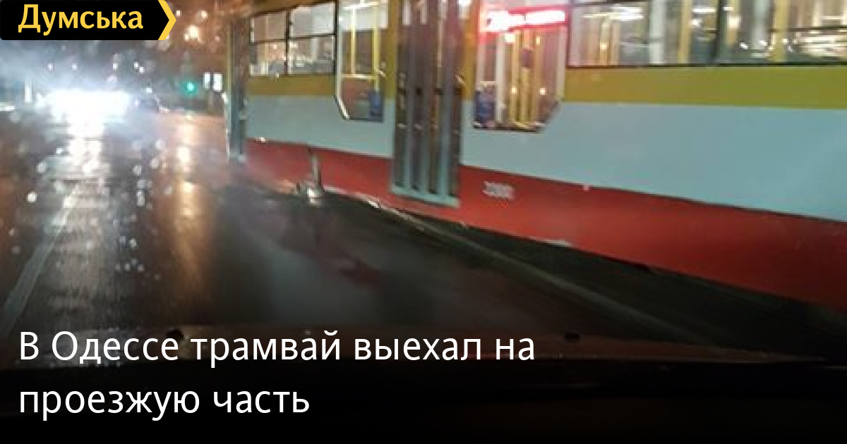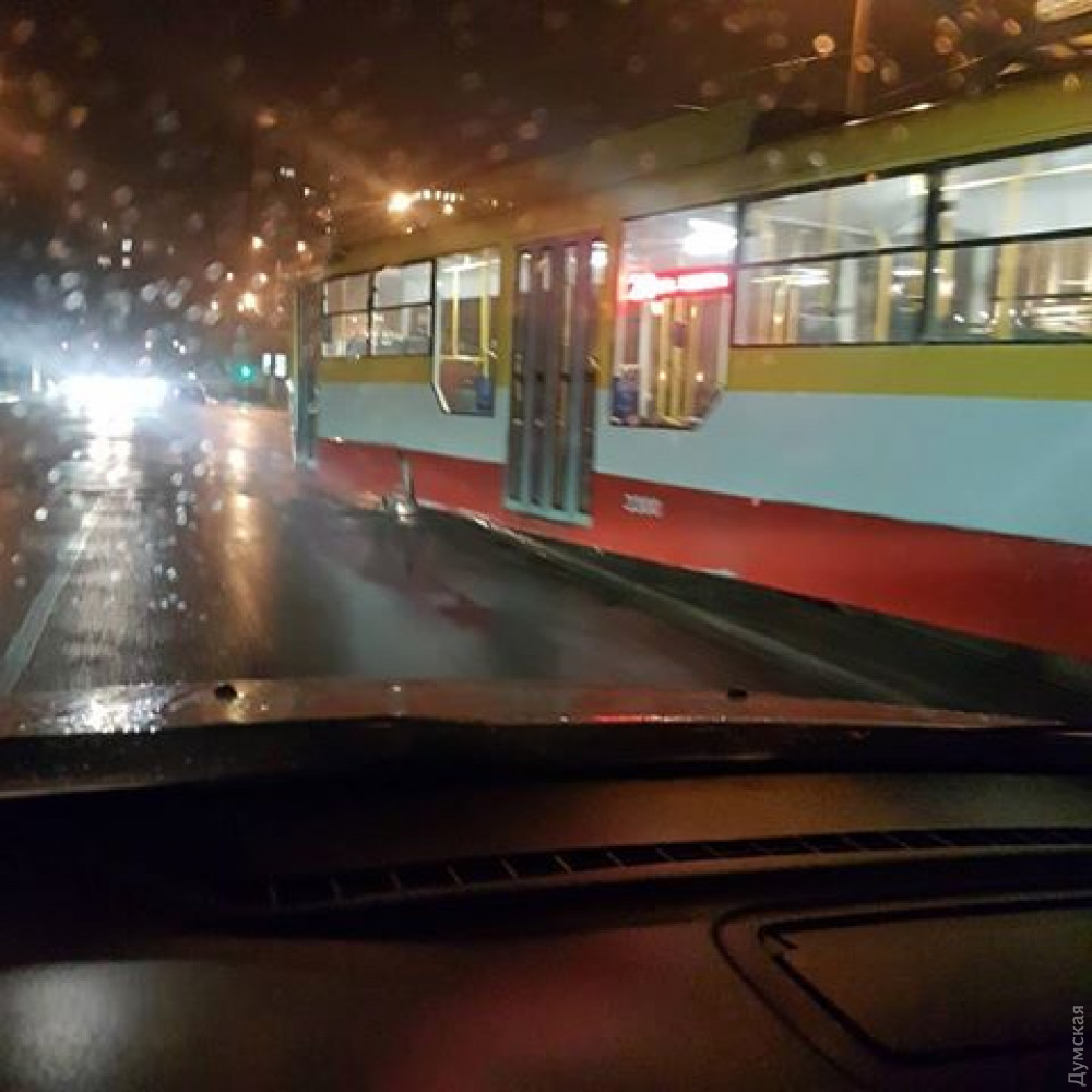 Трамвай маршрута №28 сошел с рельсов сегодня вечером на улице Леонтовича.