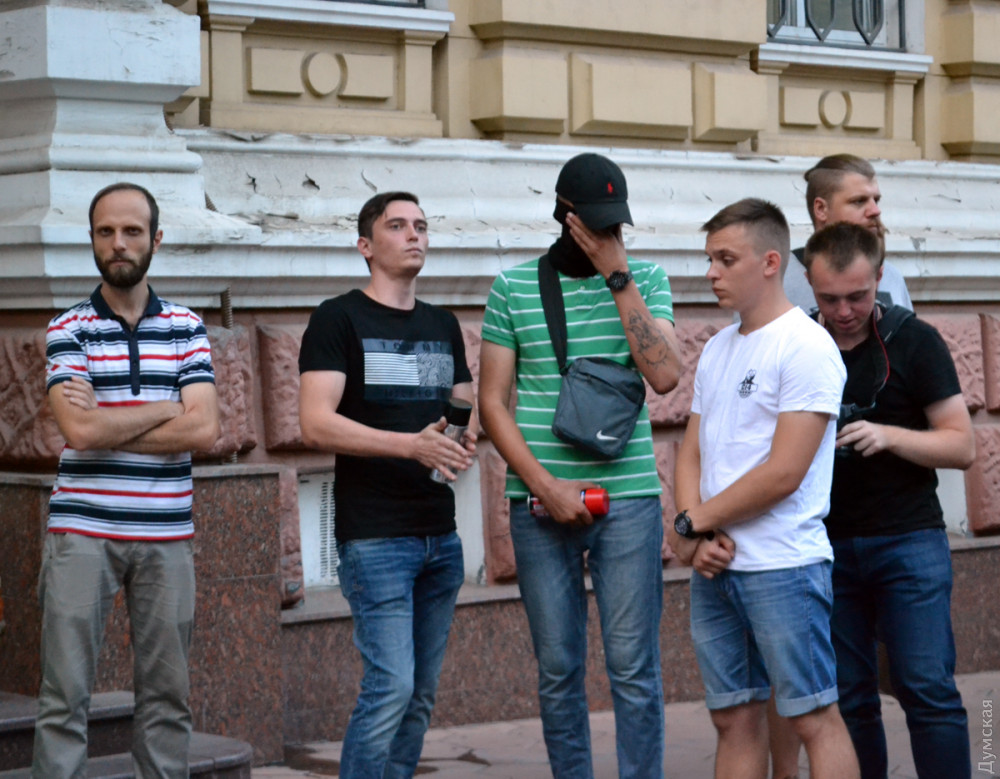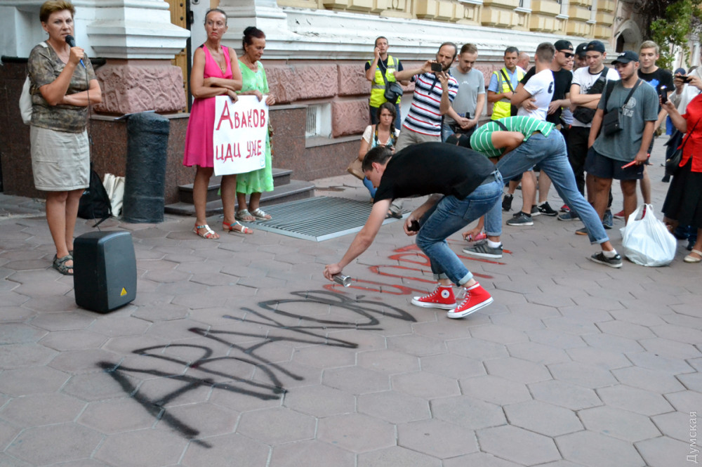 Они краской написали у входа в ГУНП: «Аваков – черт», — зажгли файеры и несколько раз проскандировали эту фразу.