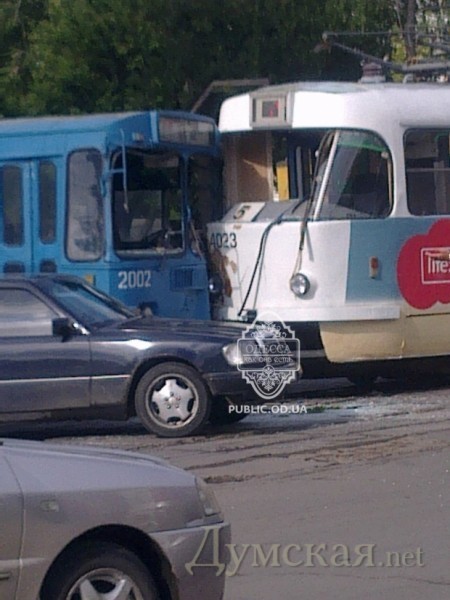 Как рассказал «Думской» директор КП «Одесгорэлектротранс» Дмитрий Полунин, в районе Пушкинской улицы троллейбус врезался в трамвай, следующий по маршруту №5. После этого в троллейбус въехало маршрутное такси.