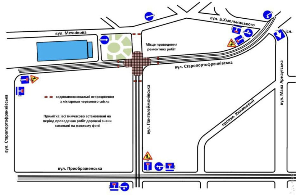 На перекрестке Старопортофранковской и Пантелеймоновской с 4 августа начинаются работы по замене трамвайных рельсов, из-за чего будет перекрыт проезд.
