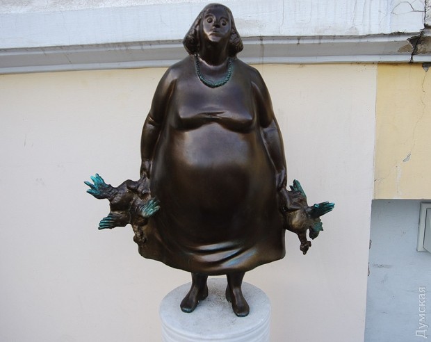 В Одессе появилась бронзовая дама с курами (фотофакт)