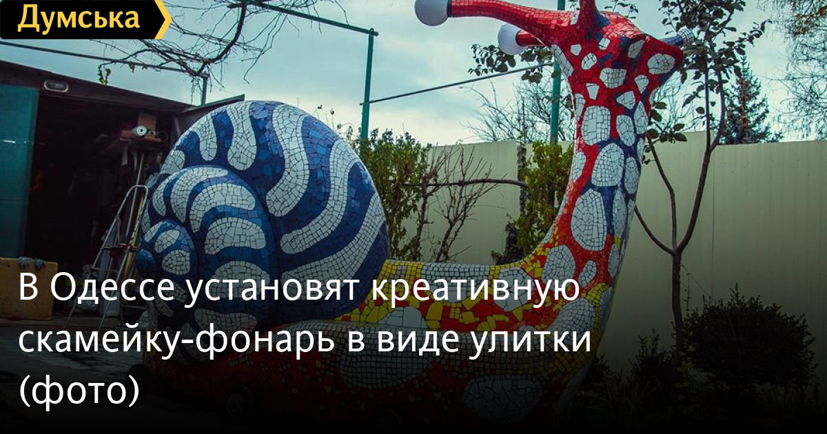 Необычный арт-объект скоро появится в Одессе — уличный фонарь в виде огромной улитки, который также может служить в качестве скамейки.