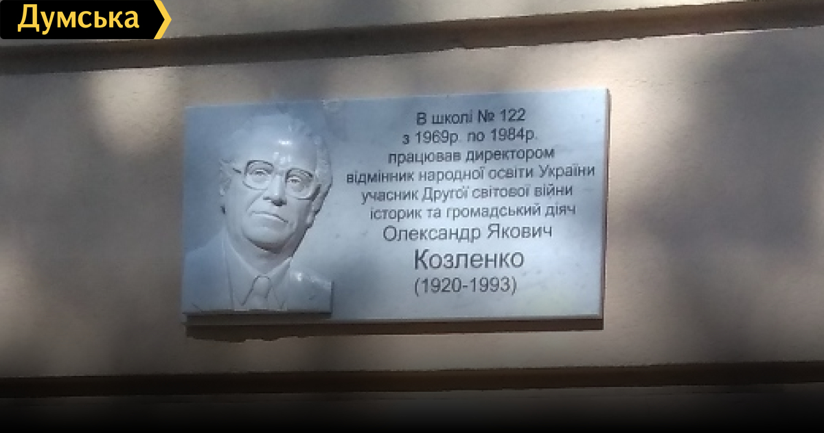 На фасаде одесской школы №122 (Старопортофранковская, 45) установили мемориальную доску бывшему многолетнему директору школы, общественному деятелю Александру Яковлевичу Козленко. Как сообщает пресс-служба горсовета, открыли мемориальную доску правнуки Александра Козленко — Павел Ефимович и Валентина Павловна вместе с преподавателями и директорами школ.