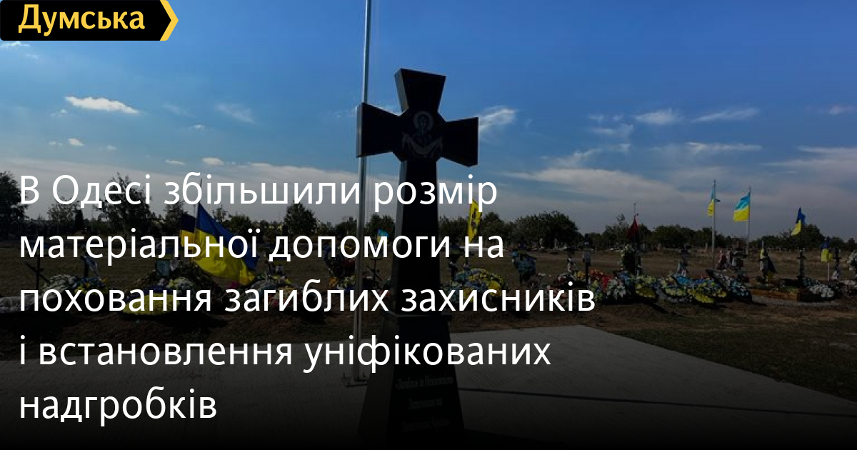 В Одесі збільшили розмір матеріальної допомоги на поховання загиблих захисників і встановлення уніфікованих надгробківРозмір одноразової матеріальної допомоги на поховання загиблих у бою з російськими окупантами одеситів збільшили до 65 тисяч гривень. Виконком Одеської міськради затвердив новий порядок надання адресної допомоги сім'ям загиблих та облаштування місць поховання військовослужбовців, повідомили в мерії. Відповідно до нового порядку, суму матеріальної допомоги збільшено на 10 тисяч гривень. Як пояснили в міськраді, йдеться про сім'ї тих захисників, які замовили встановлення надгробків раніше затвердженого мерією зразка. Для поховання полеглих захисників облаштували Алею слави на Західному кладовищі, але тепер сім'ї загиблих можуть замовити пам'ятник і встановити його на будь-якому іншому кладовищі міста. Як ми раніше писали, муніципалітет затвердив два варіанти надгробків для загиблих захисників. Родичі воїнів зможуть вибрати один із двох варіантів — у вигляді козацького хреста (для християн) і звичайної плити. Пам'ятники мармурові, чорного кольору, заввишки 120 см і завширшки 60 см. Замовляти та встановлювати надгробки буде КП «Спеціалізоване підприємство комунально-побутового обслуговування». Нагадаємо, ідея уніфікувати надгробки обговорювалася з квітня 2023-го. Муніципалітет проводив консультації з рідними та близькими загиблих. Минулого року уніфіковані пам'ятники ставили тільки на Алеї слави Західного кладовища. Загалом було встановлено 29 таких надгробків, повідомили в мерії. СМЕРТЬ РОСІЙСЬКИМ ОКУПАНТАМ! Помітили помилку? Виділяйте слова з помилкою та натискайте control-enter |